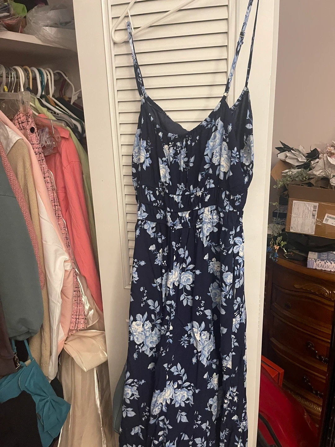 33floral print sundress in a size medium. You can cross the lace together and waist snitches. Worn twice on vacation.