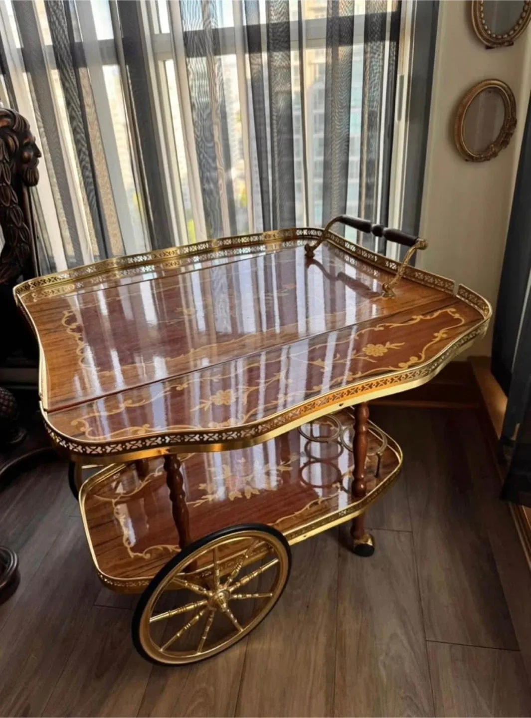 Vintage Wood & Gold Tea Cart