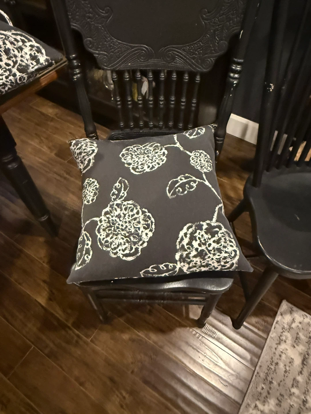Snuggle up with this stylish throw pillow! It features a lovely floral pattern in black and white, perfect for adding a touch of elegance to your living room or bedroom. It's in great condition and ready to find a new home