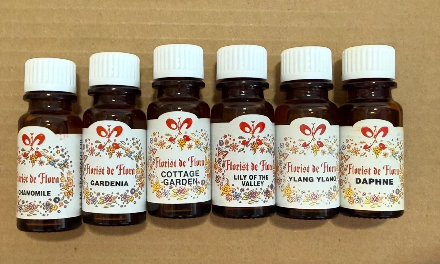 1215 mL bottle of Florist de Flora fragrant oil. This oil is traditionally blended in Australia. I have different scents available: - Chamomile - Gardenia - Cottage Garden - Lily of the Valley - Ylang Ylang - Daphne 1 box = 24 bottles. $25 each box