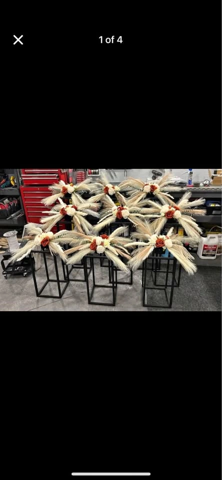 15X9 flower stands with fake boho arrangement included: X3 tall (40” tall, 11”x11”) X3 med(31.5” tall, 11”x11”) X3 short(23.5” tall, 10”x10”) Selling as a set, splitting up is not an option. Pickup 25 min west of stony plain. No holds.