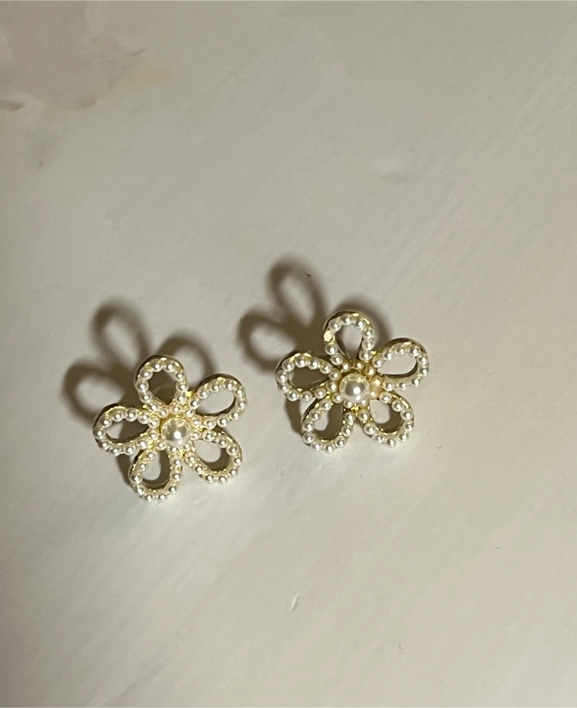 122Cute flower earrings with pearl accents. Perfect for adding a touch of elegance to any outfit! Cash only Pickup only