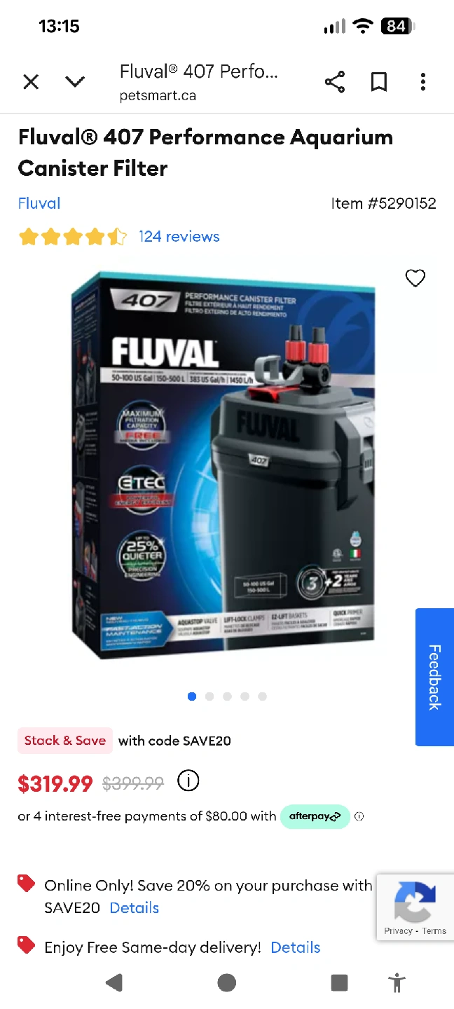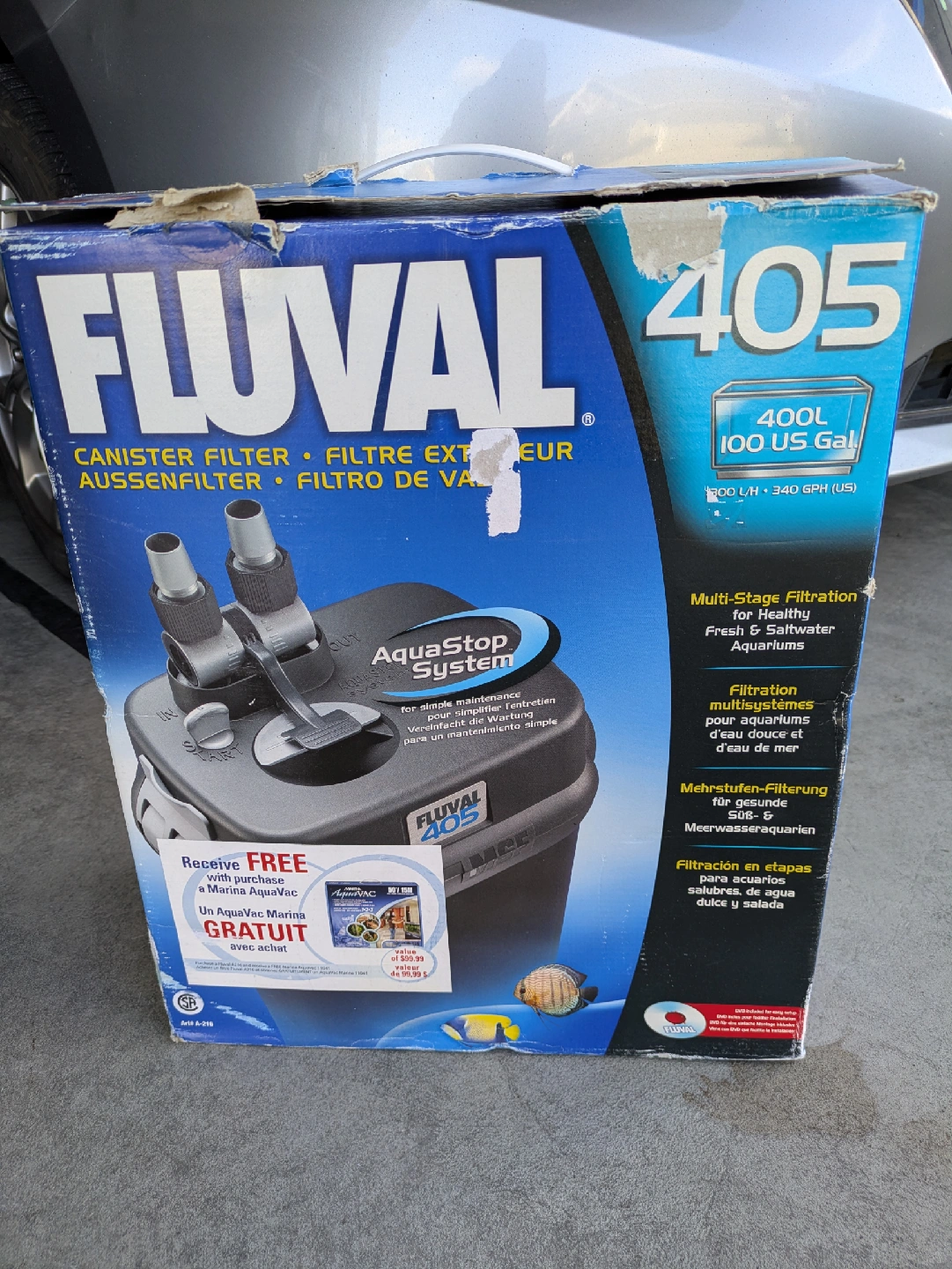 10Selling a Fluval 405 Canister Filter! It's in great shape and ready to go into your aquarium. It's a canister filter for aquariums up to 100 US Gal, or 400L. It features multi-stage filtration for healthy fresh and saltwater aquariums. Comes with the box!