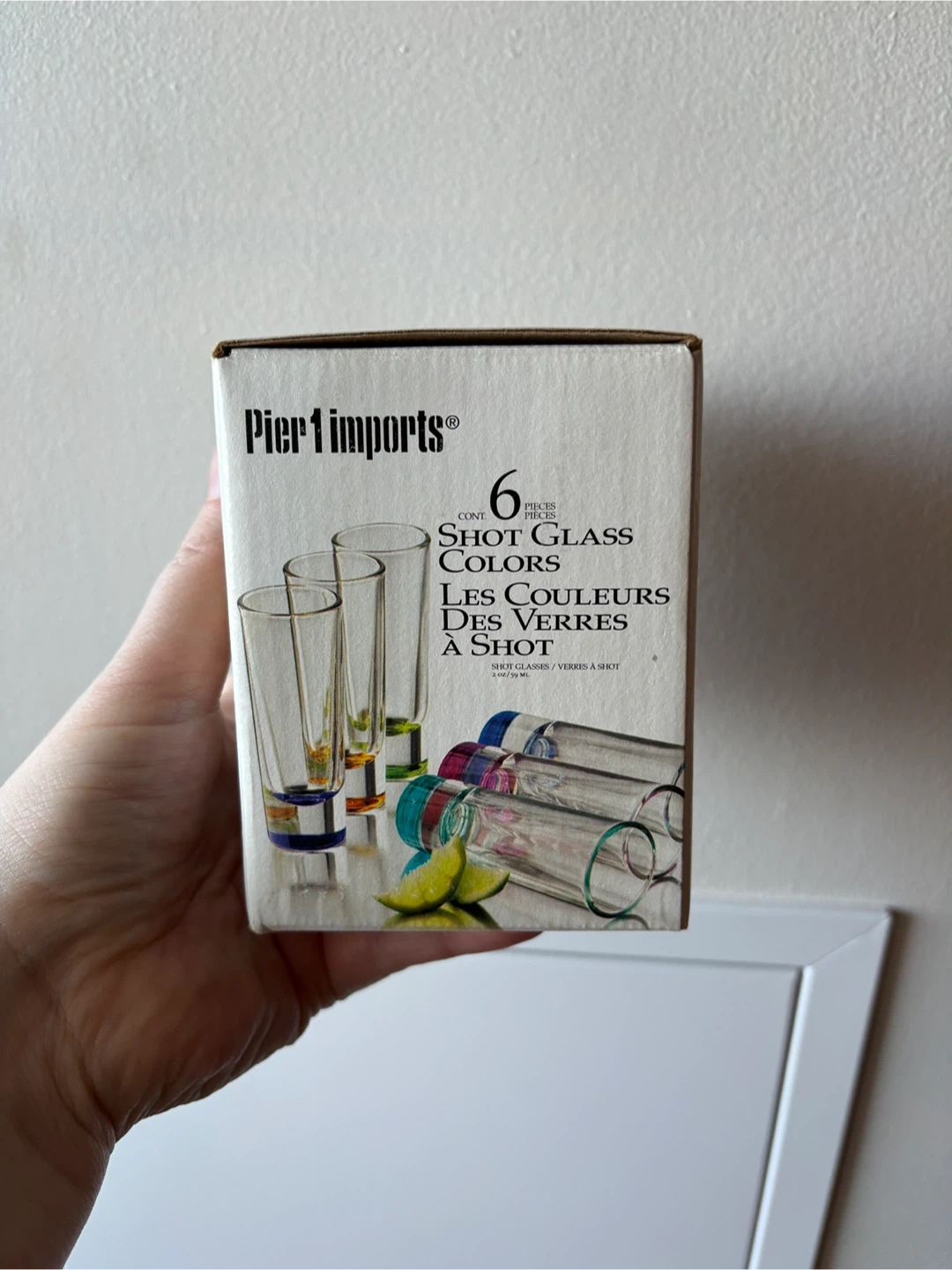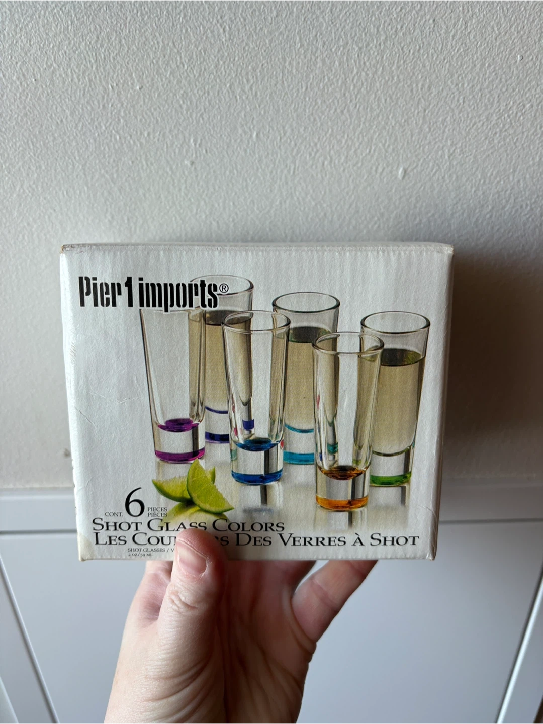Buy & SellPier 1 Imports - 6 Rainbow Shot GlassesPier 1 Imports - 6 Rainbow Shot Glasses$10Set of 6 shot glasses in various colours. BNIB.ConditionNewWHERE TO MEETCheck LocationView MapSELLERHeatherFalby Ct100 reviews0 chats·0 favorites·10 viewsSEND CHAT TO SELLERHi Heather! I’m interested in your listing.Hi Heather! I’m interested in your listing.Get the Karrot app to chatSign In to chat