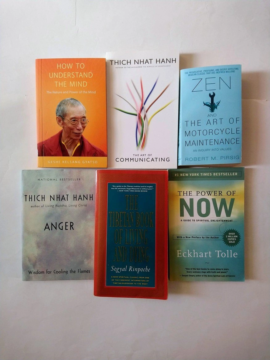 $6 each except for The Power of Now. Cash only; prices are firm.