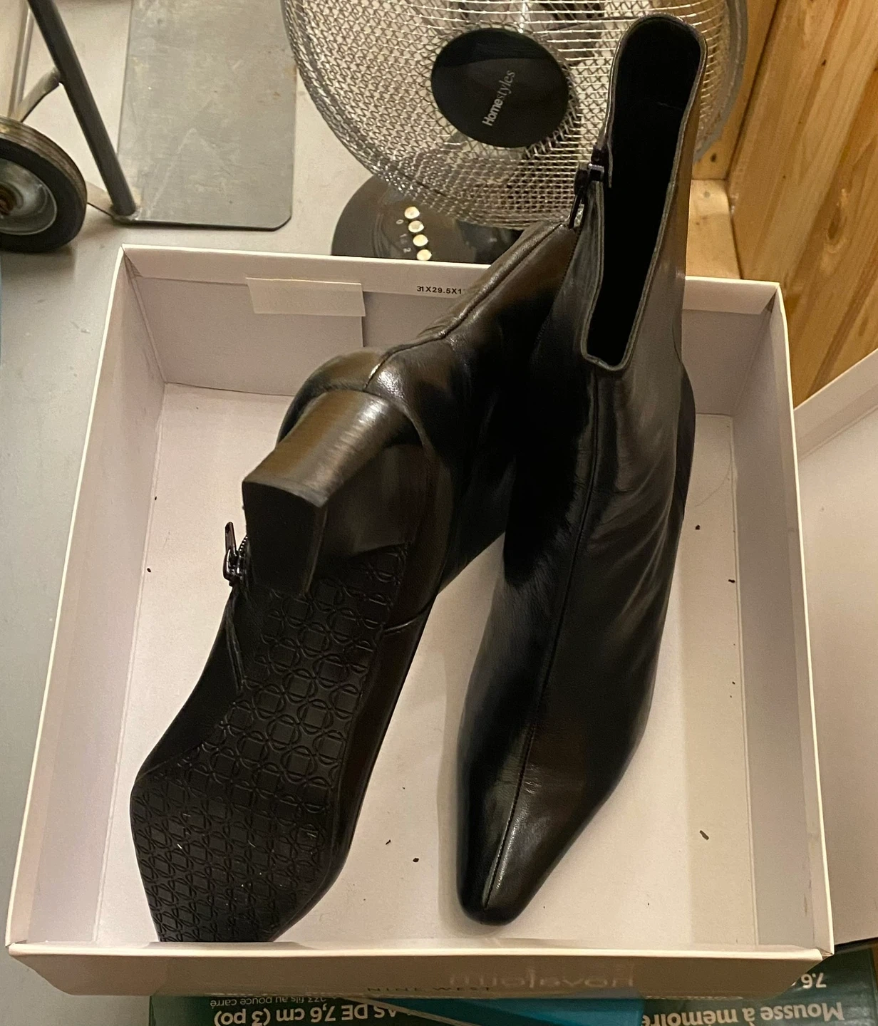 Buy & SellNine West Black Leather Ankle BootsNine West Black Leather Ankle Boots$34Stylish Nine West black leather ankle boots with a pointed toe and block heel. Includes the original box. These boots are a size 9. NewConditionNewSize9BrandNine WestWHERE TO MEETCheck LocationView MapSELLERverifiedCaroleClearbrook700 reviews0 chats·0 favorites·3 viewsSEND CHAT TO SELLERHi Carole! I’m interested in your listing.Hi Carole! I’m interested in your listing.Get the Karrot app to chatSign In to chat