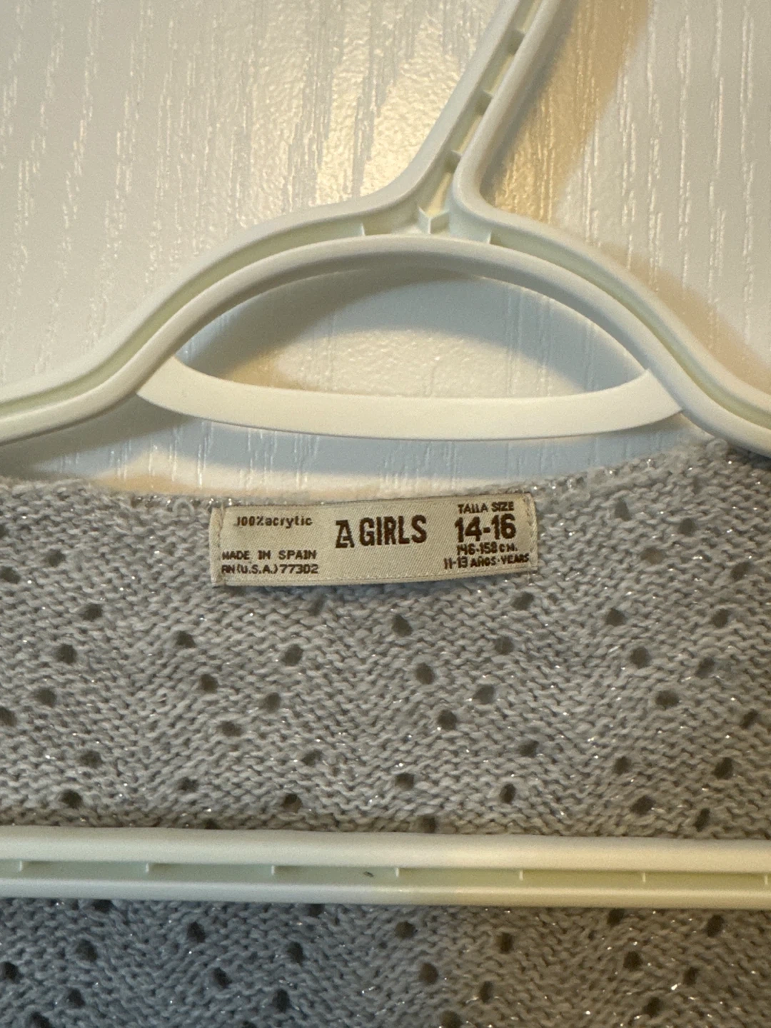 A-GIRLS grey open-front knit cardigan with a subtle sparkle detail. Made from 100% acrylic and kind of scratchy material due to the sparkle detail so don’t recommend wearing on bare skin.