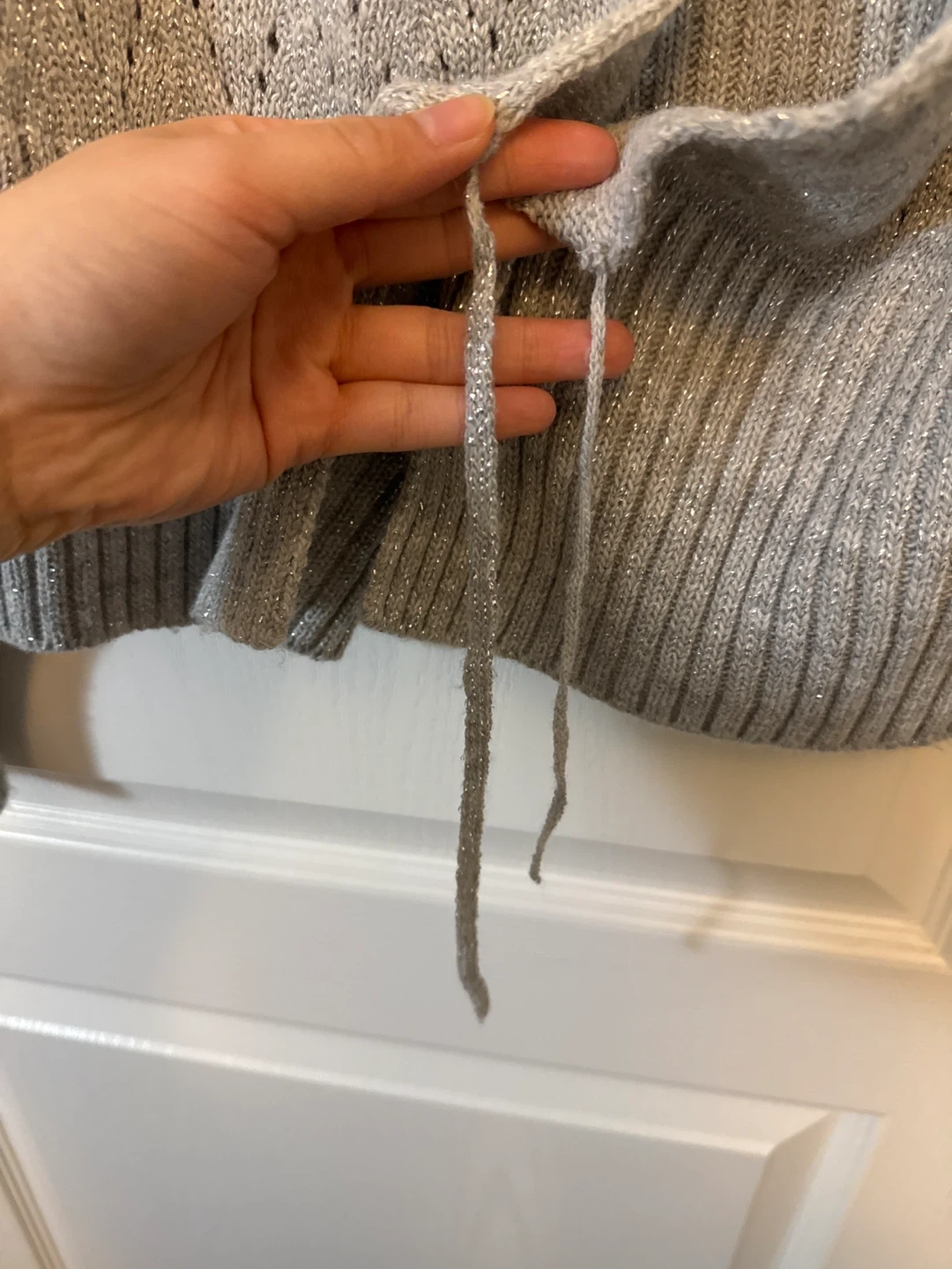 A-GIRLS grey open-front knit cardigan with a subtle sparkle detail. Made from 100% acrylic and kind of scratchy material due to the sparkle detail so don’t recommend wearing on bare skin.