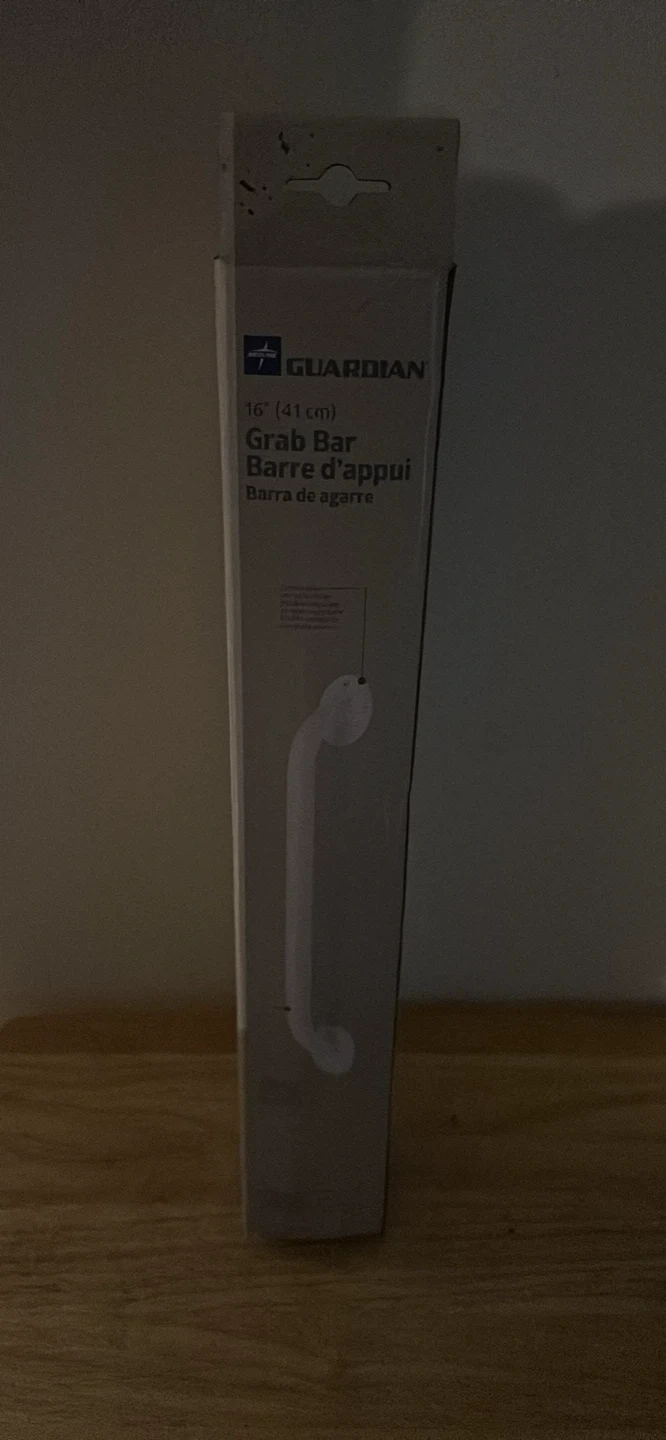 This is a Guardian 16 inch grab bar. It's white and comes in its original packaging. Useful for adding stability in bathrooms.
