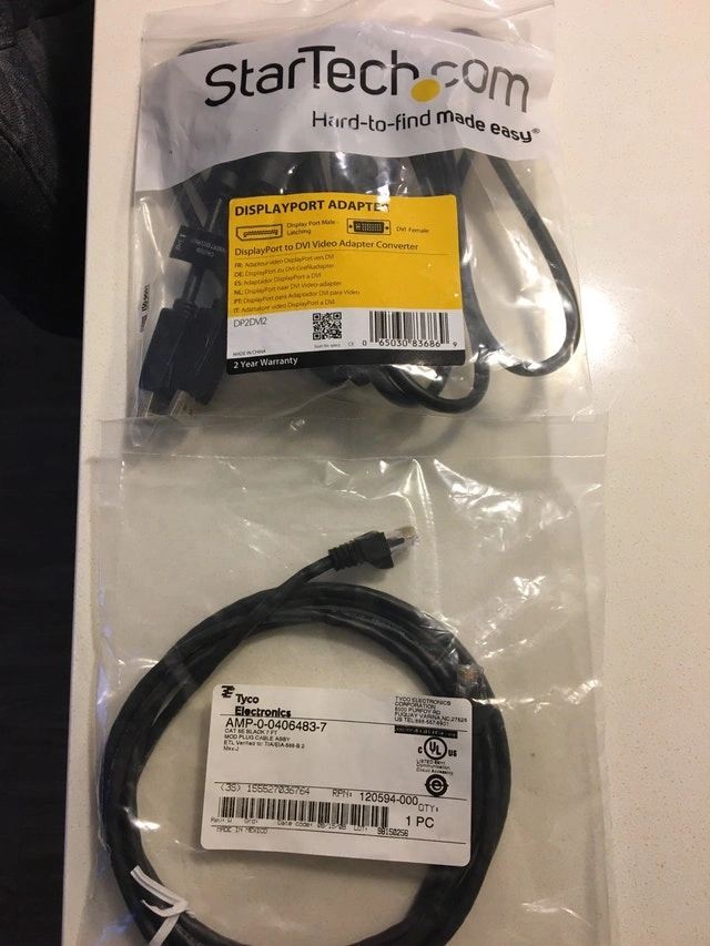 Selling a new StarTech DisplayPort to DVI video adapter converter (model DP2DVI2) to connect DisplayPort devices to DVI displays. Also includes one used Tyco Electronics CAT 5e Black 7FT cable. The item is still available. Cash accepted.