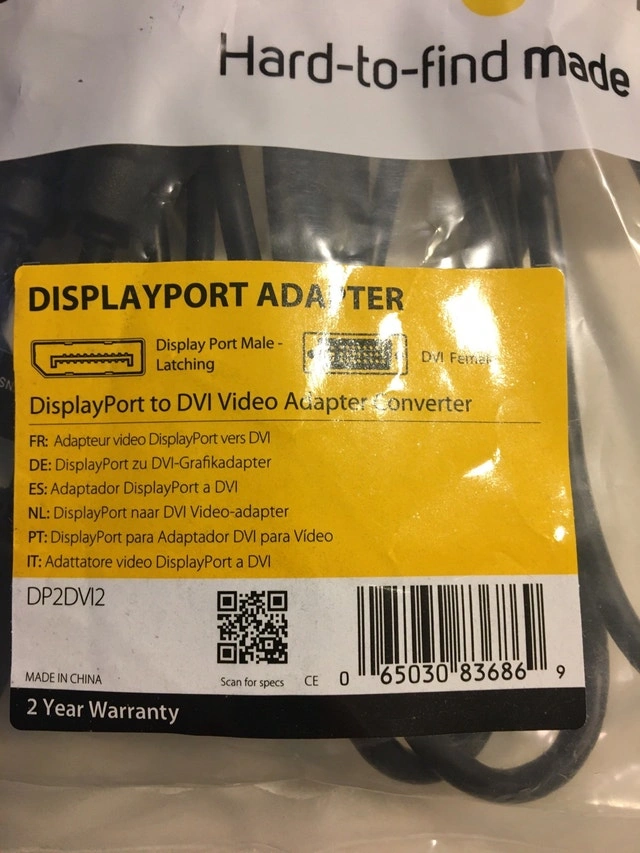 Selling a new StarTech DisplayPort to DVI video adapter converter (model DP2DVI2) to connect DisplayPort devices to DVI displays. Also includes one used Tyco Electronics CAT 5e Black 7FT cable. The item is still available. Cash accepted.