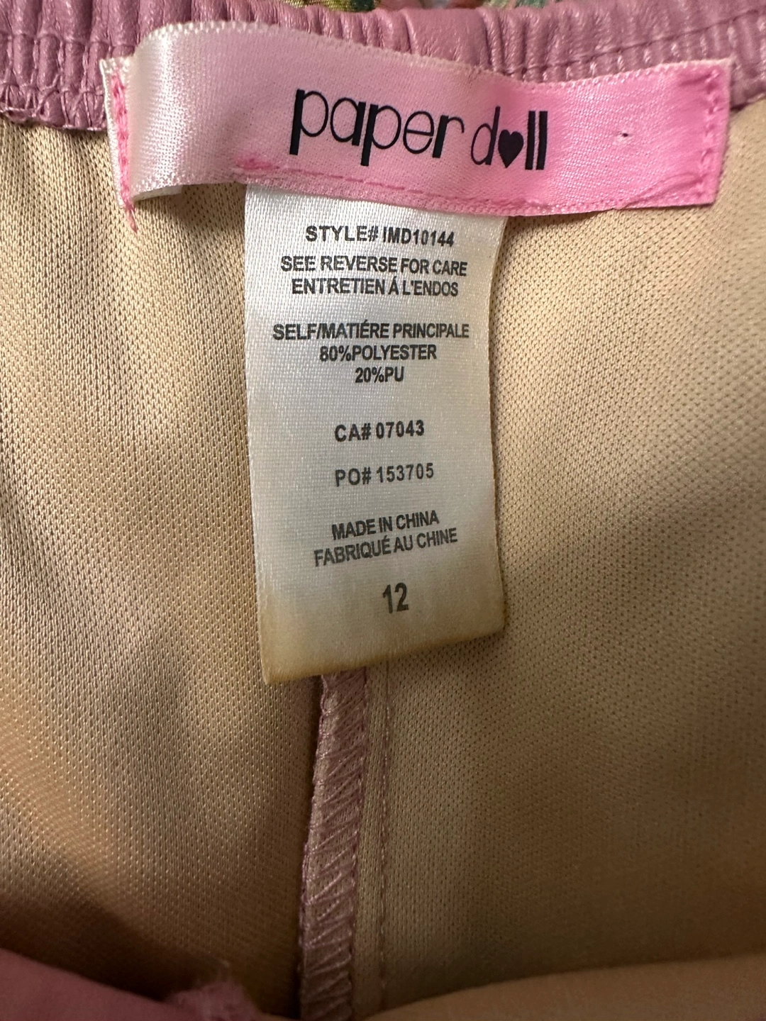 It’s made of 80% polyester and 20% PU. Perfect for a night out! Pink party!
