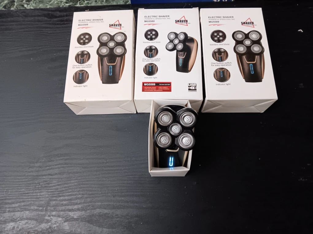 MG559 Cordless electric portable professional electric hair style shaver. With 5 Five head rotary shaving system. Stainless steel blades. One button operation. Indicator light. USB rechargeable.