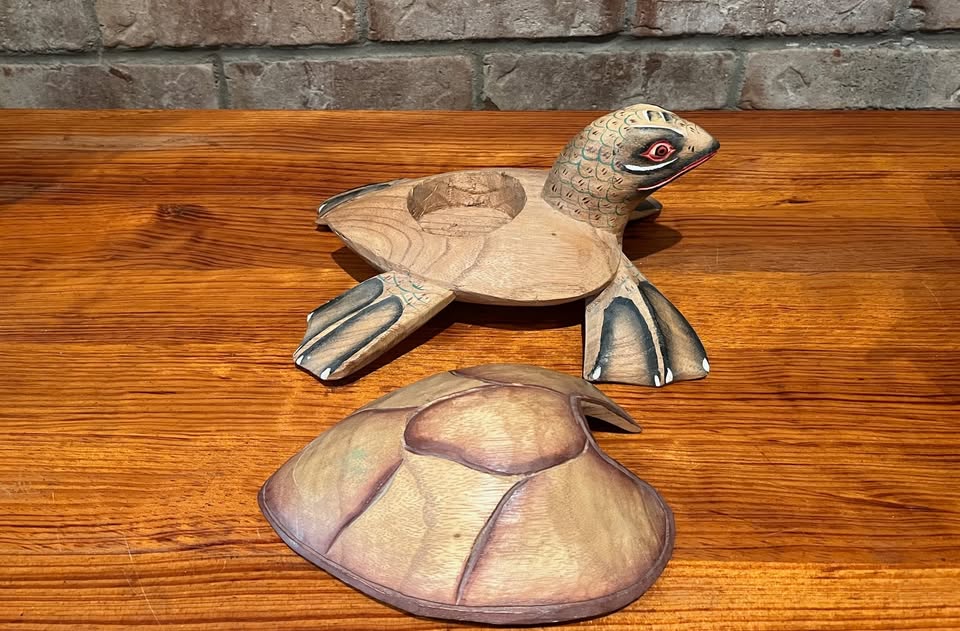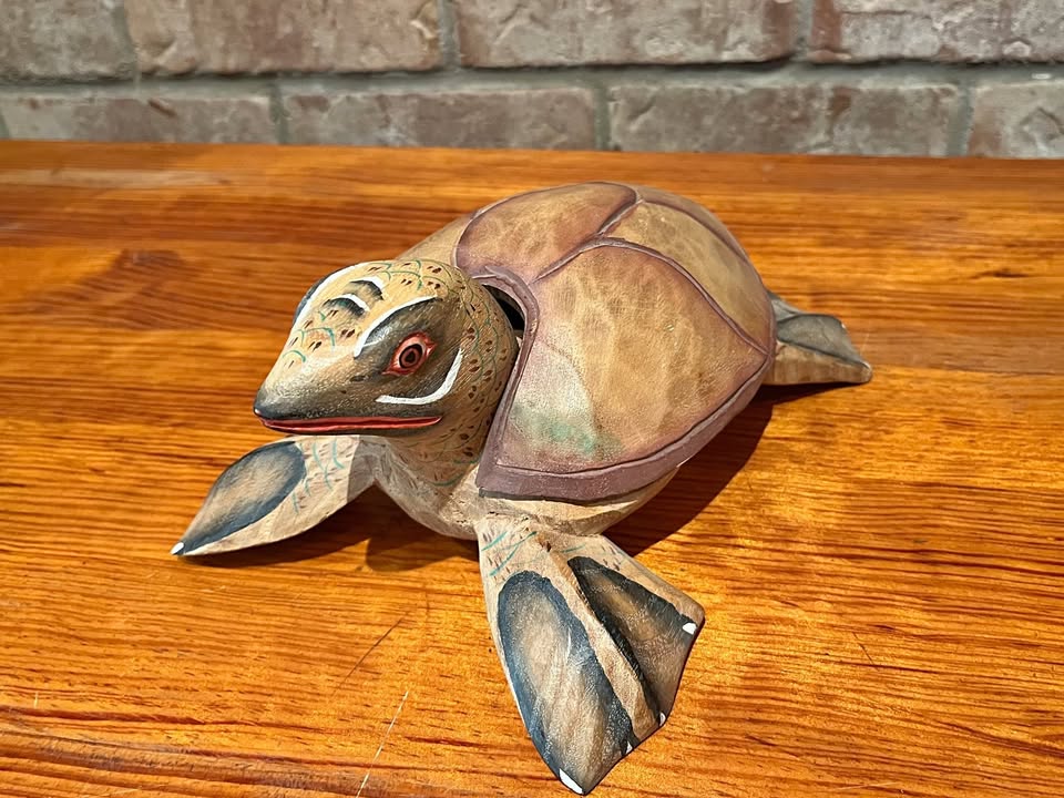 1 / 51 / 5Buy & SellVintage Hand-Carved Wooden Turtle Box/SculptureVintage Hand-Carved Wooden Turtle Box/Sculpture$15Beautifully hand carved and painted. Shell removes to reveal hidden compartment. Excellent condition. Measures approx. 9.25 x 6.75 x 4 inches.WHERE TO MEETCheck LocationView MapSELLERverifiedTiffanyMount Pleasant E35530 reviews0 chats·5 favorites·80 viewsSEND CHAT TO SELLERHi Tiffany! I’m interested in your listing.Hi Tiffany! I’m interested in your listing.Get the Karrot app to chatSign In to chat