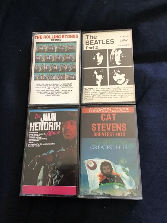 Relive the classics with this set of four vintage audio cassettes featuring iconic rock music from The Rolling Stones, The Beatles, Jimi Hendrix, and Cat Stevens, capturing the golden era of rock. $20 for all 4, making this collection a great deal for any music enthusiast. Pickup in Burlington. If this ad is up, then, yes, they're still available.