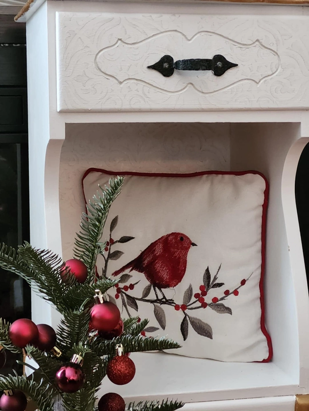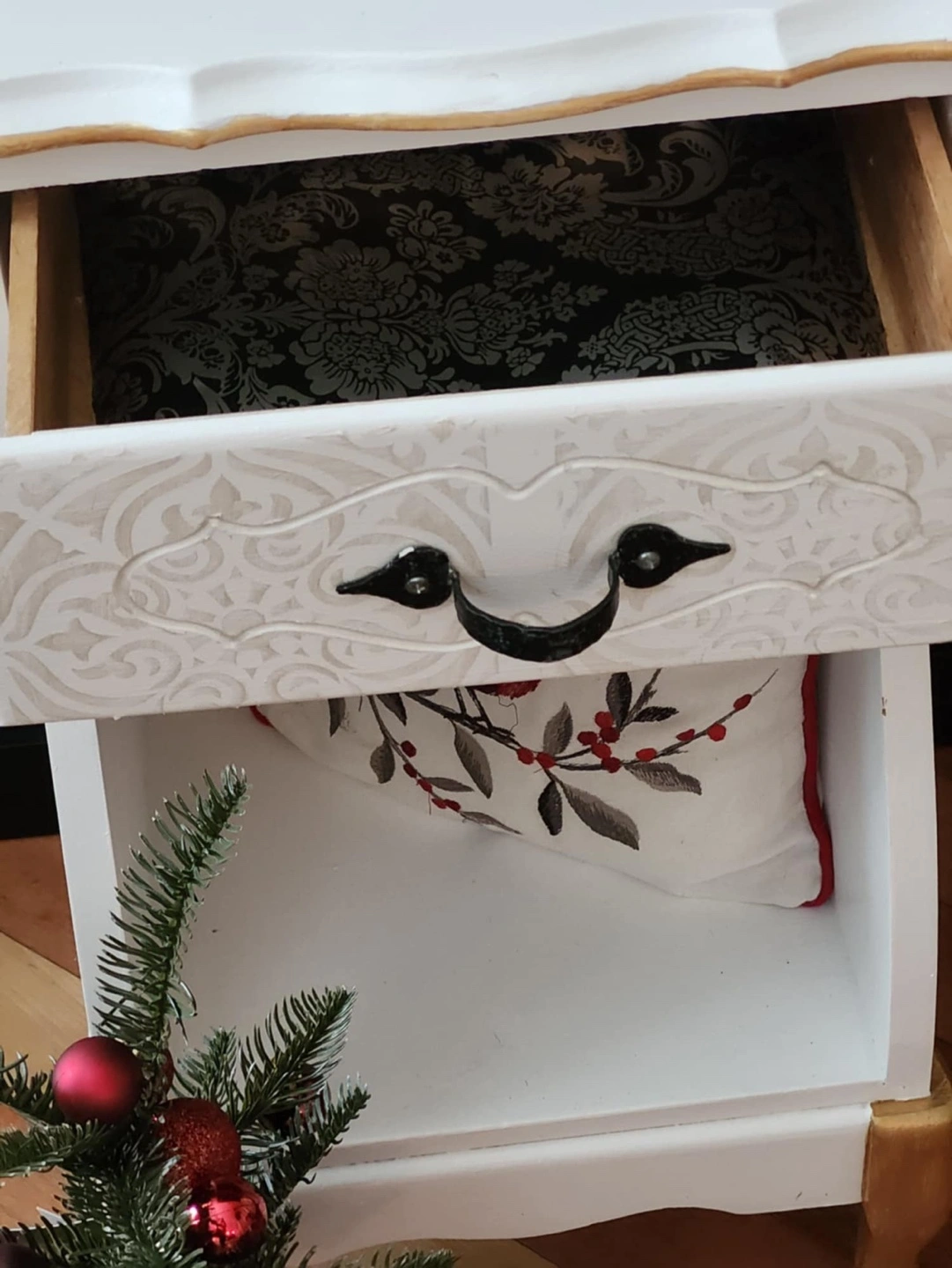 Refurbished and repainted with golden and white accent plus raised stencil