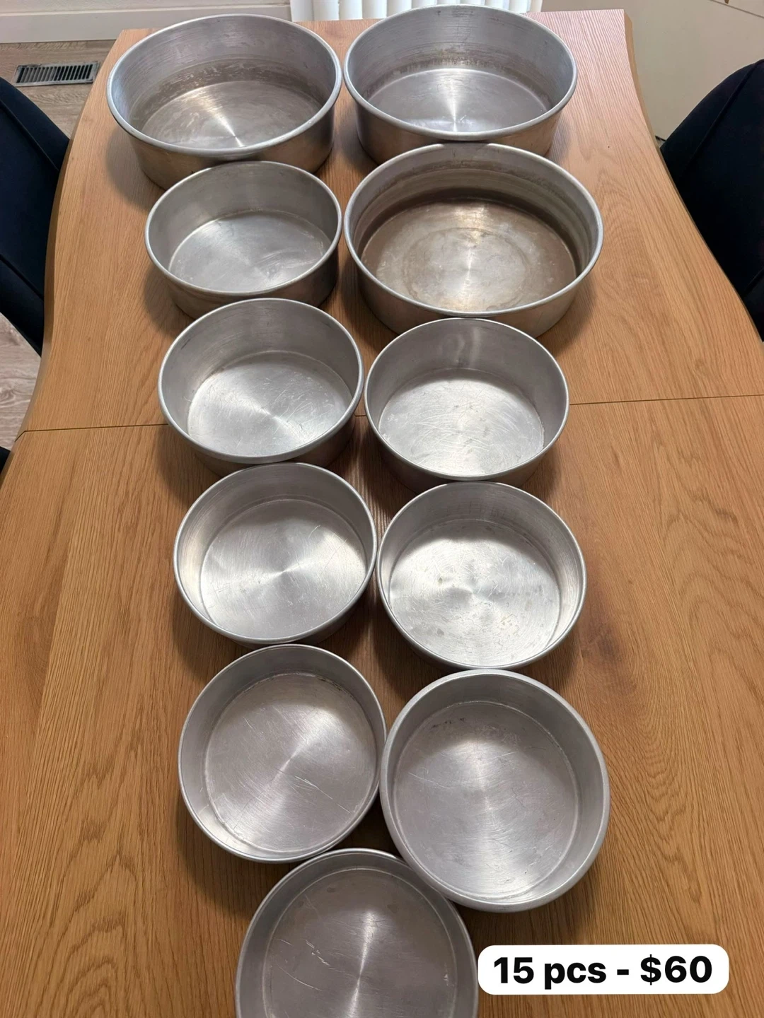 This set includes 15 round cake pans. They're made of aluminum, great for baking a variety of cakes. Various sizes available.