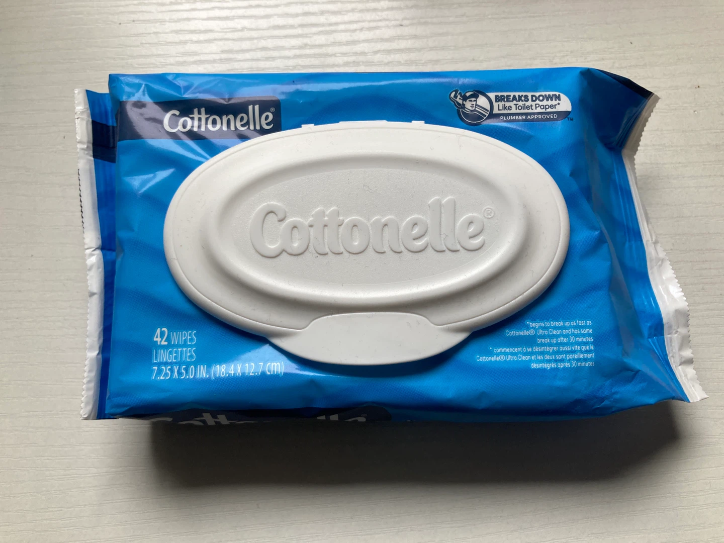 This package contains 42 Cottonelle wipes. They measure 7.25 by 5.0 inches. They're plumber approved and break down like toilet paper!