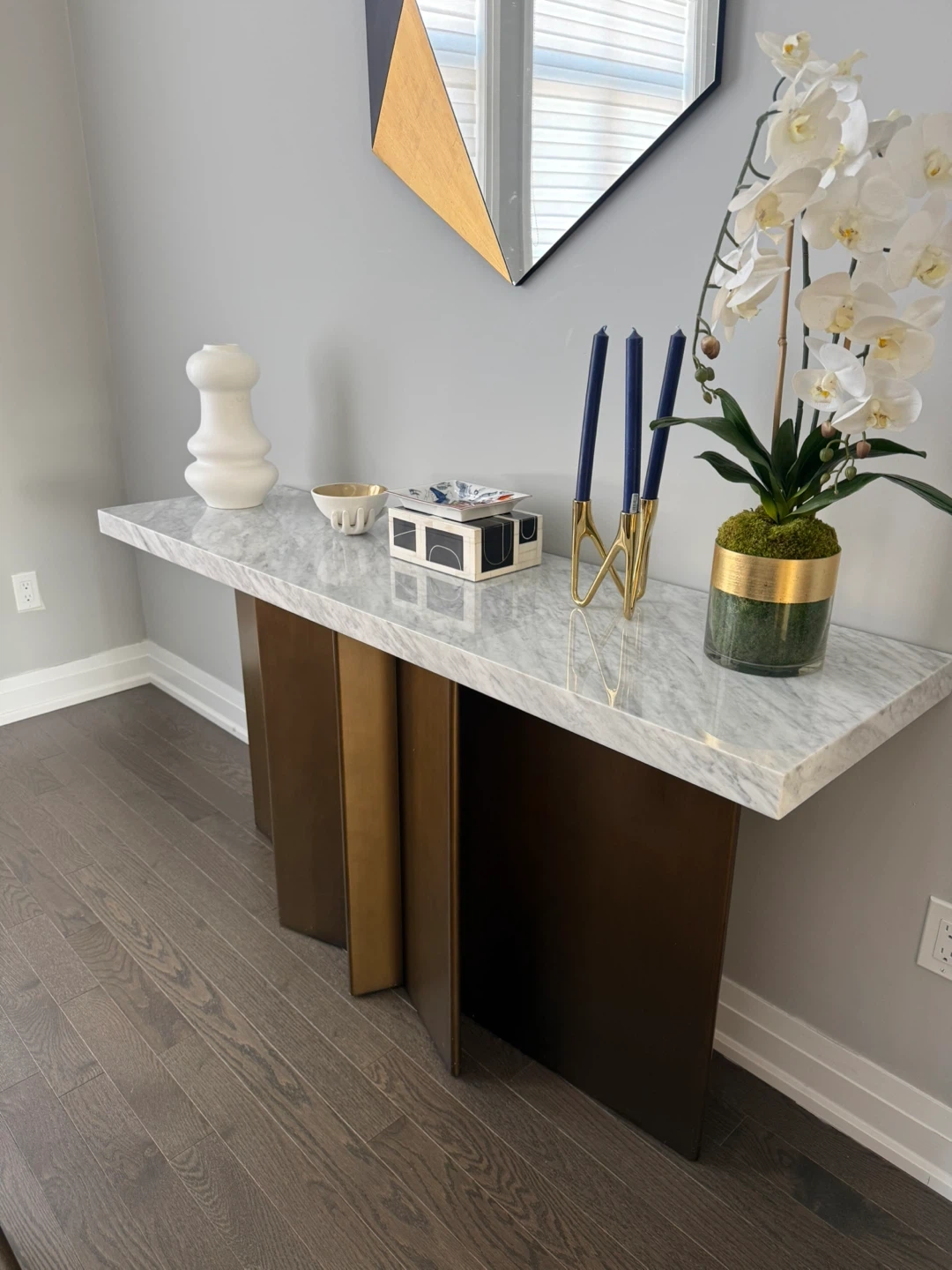 Marble Top Console Table with Bronze Base