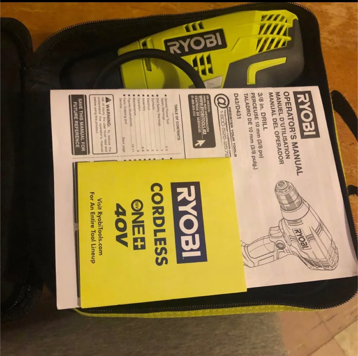 Ryobi Variable Speed Drill with Tool Bag
