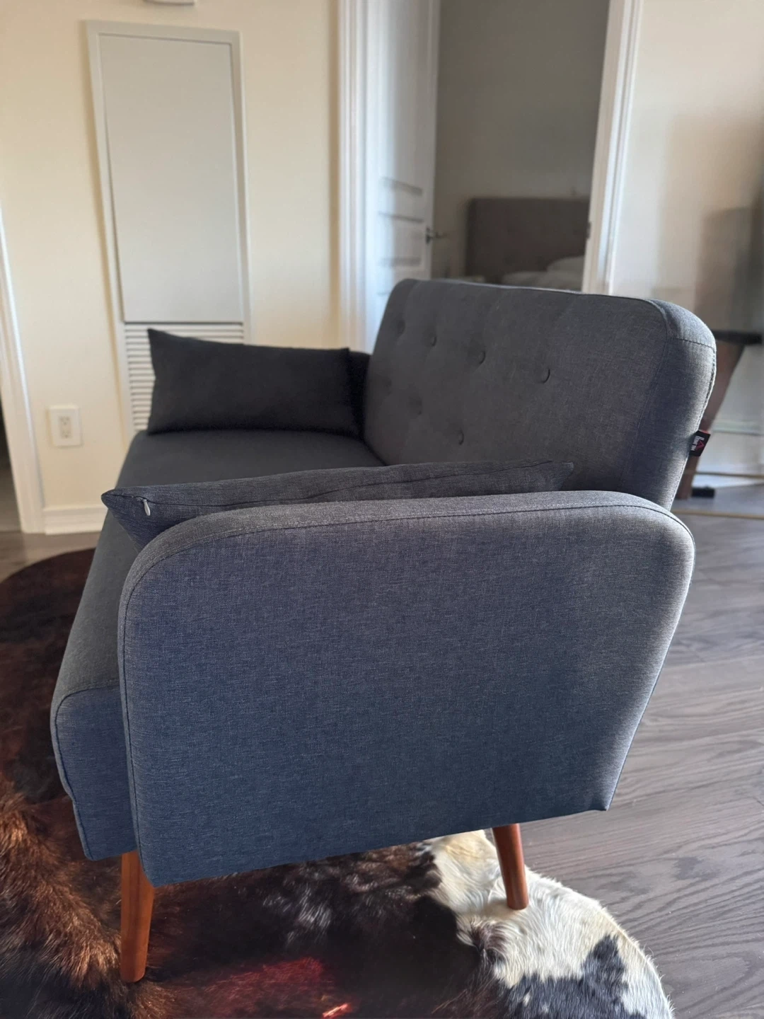 Selling an Aosom HOMCOM 53" 2-seat sofa! It's a modern love seat style with upholstered cushions and a solid wood frame. The colour is a beautiful blue.