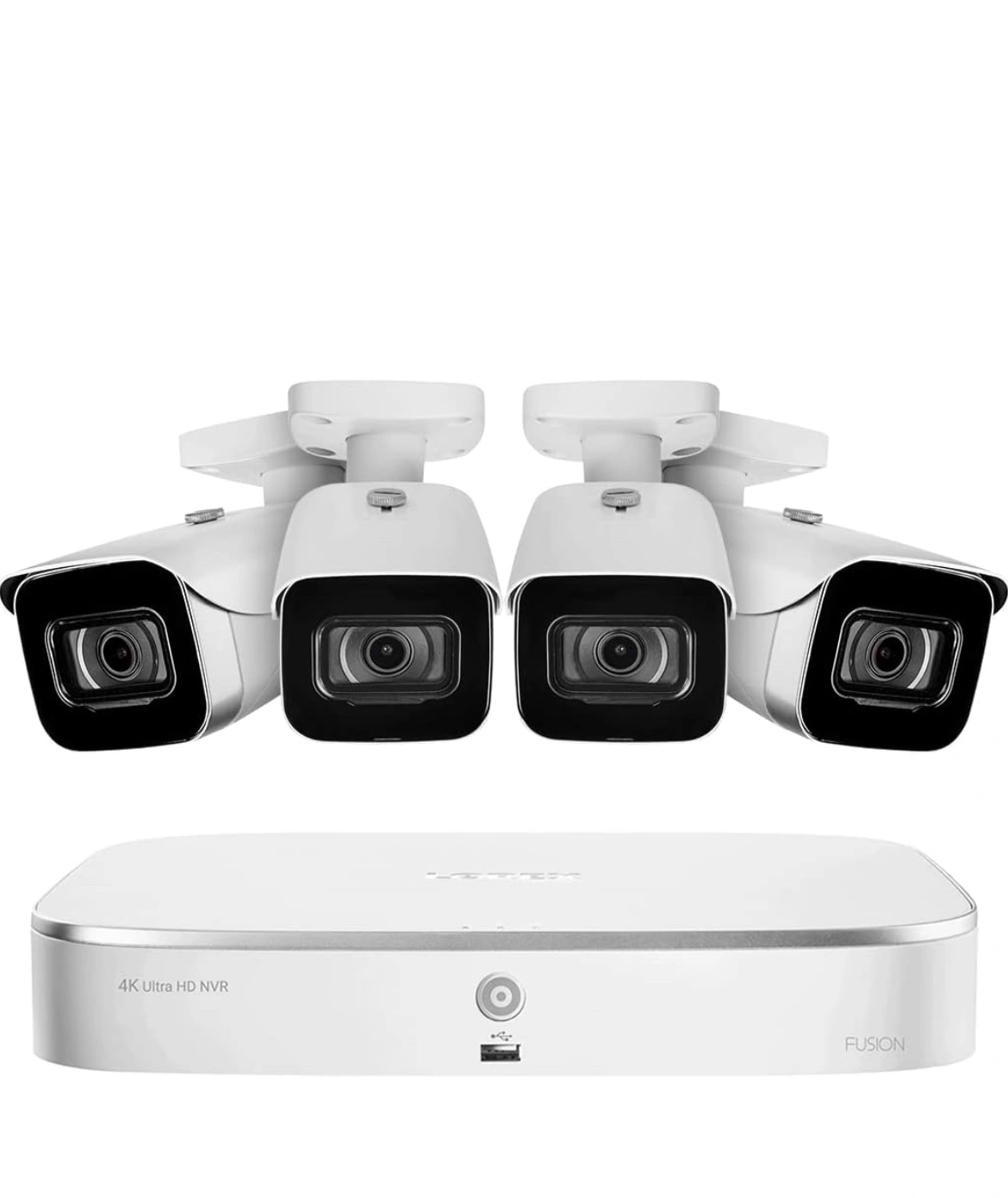 Featuring industry-leading 4K (8 megapixel) resolution recording, this security camera system from Lorex will bring a whole new level of detail to your monitoring. It includes an 8-channel Fusion Series Network Video Recorder (NVR)and four 4K IP bullet security cameras. Whether you are looking to protect your home or small business, this powerful security camera system will help you secure the things that matter most.