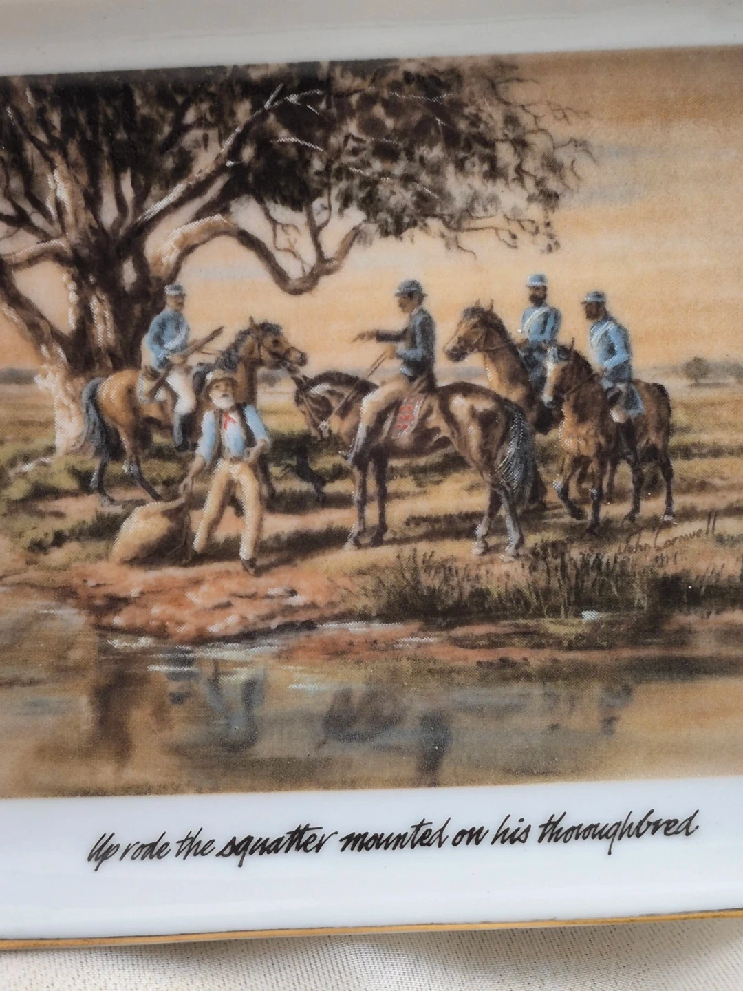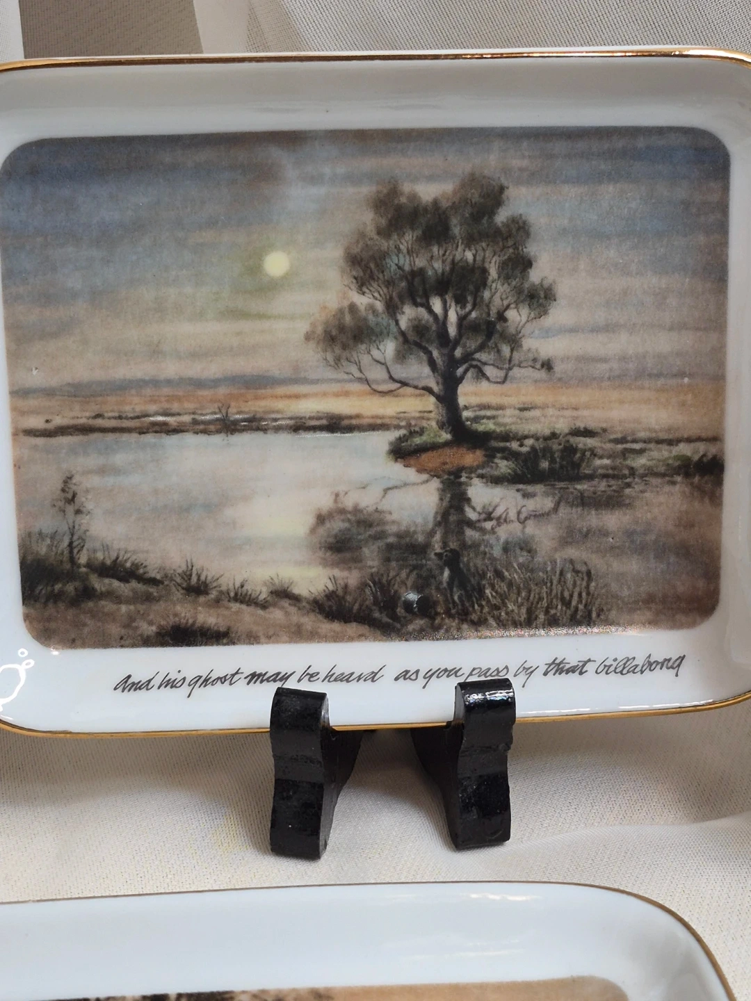 The Waltzing Matilda Collection by Webb of Australian Scenes Set of 4 Porcelain Decorative Dishes 5 1/2" x 4" Brand New with old box please see all pictures