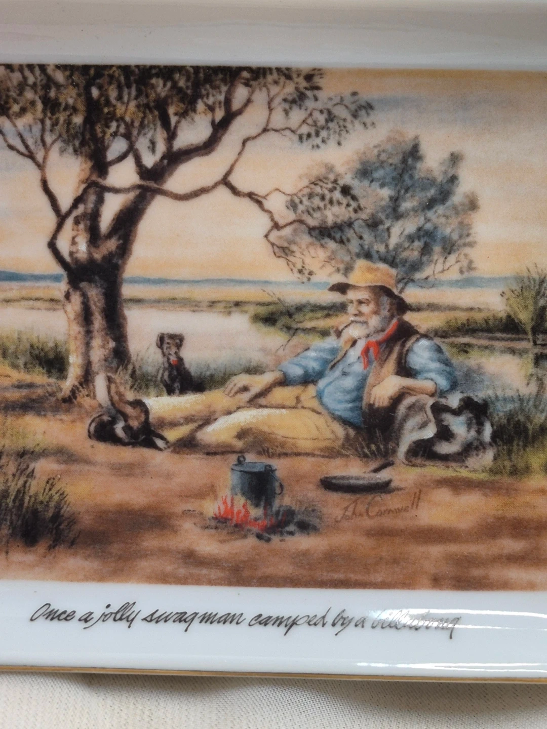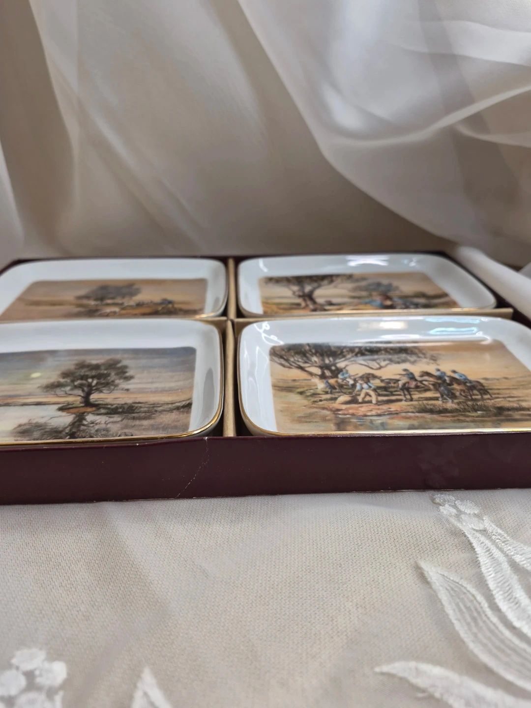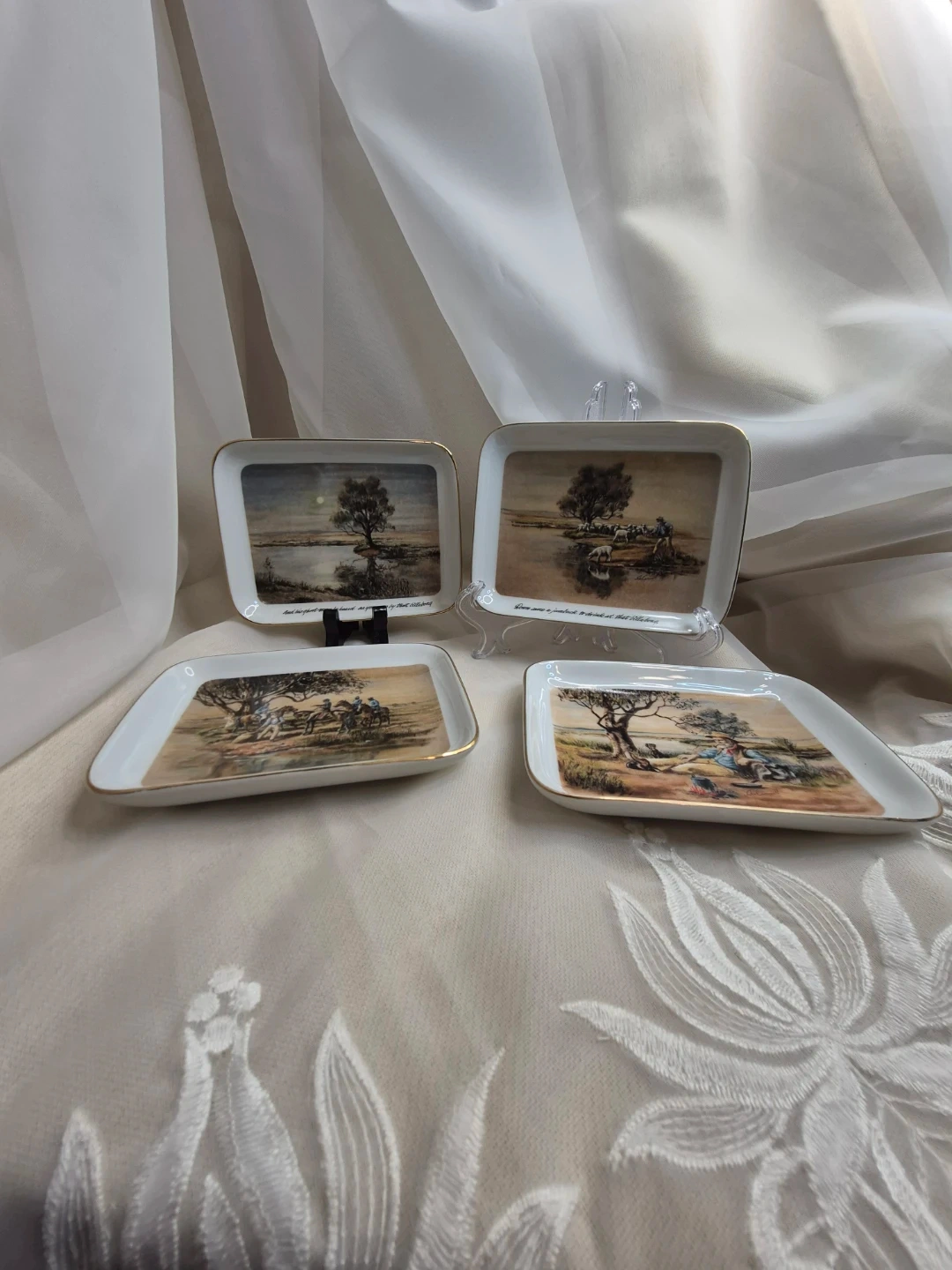 The Waltzing Matilda Collection by Webb of Australian Scenes Set of 4 Porcelain Decorative Dishes 5 1/2" x 4" Brand New with old box please see all pictures