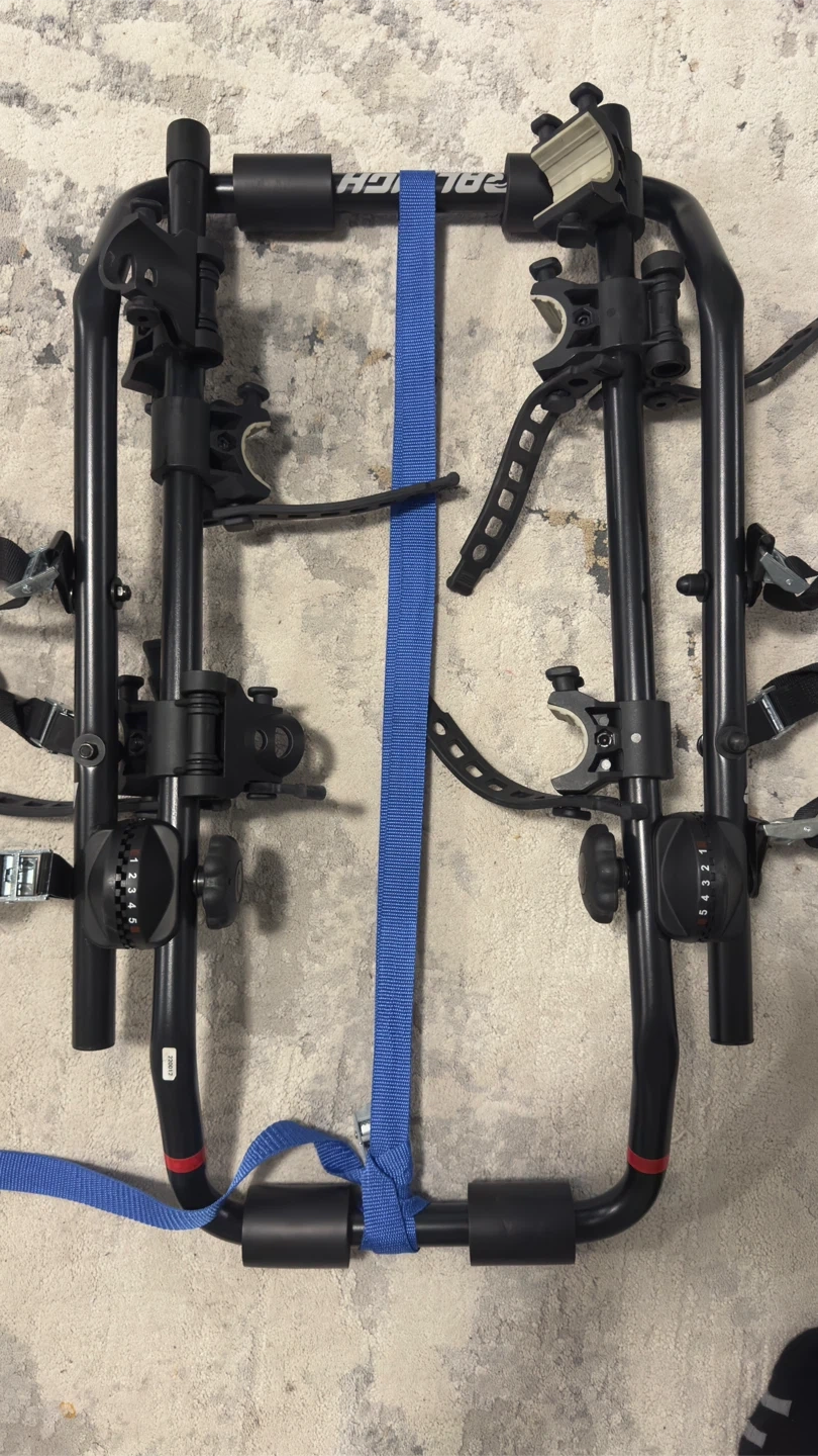 This is a Hollywood Racks trunk bike rack. It includes multiple straps for secure mounting. This rack is great for transporting your bikes on road trips or daily commutes!