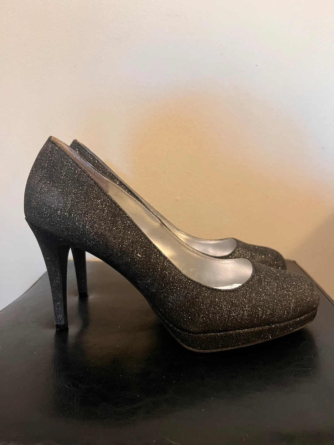 Fioni Night Black Glitter Heels - Size 11