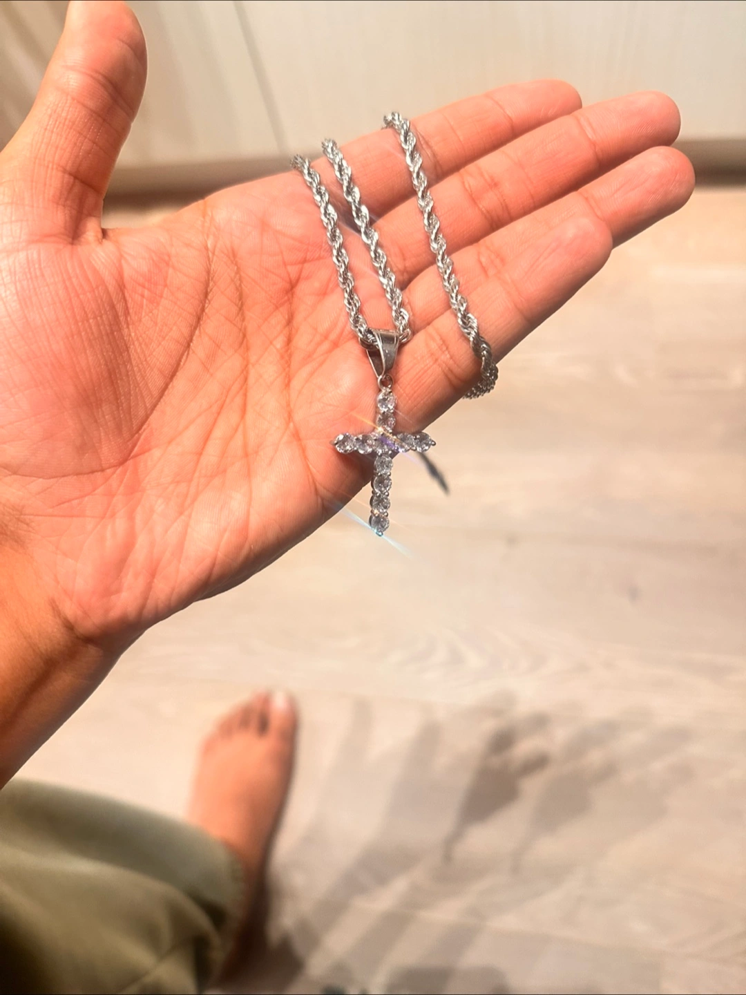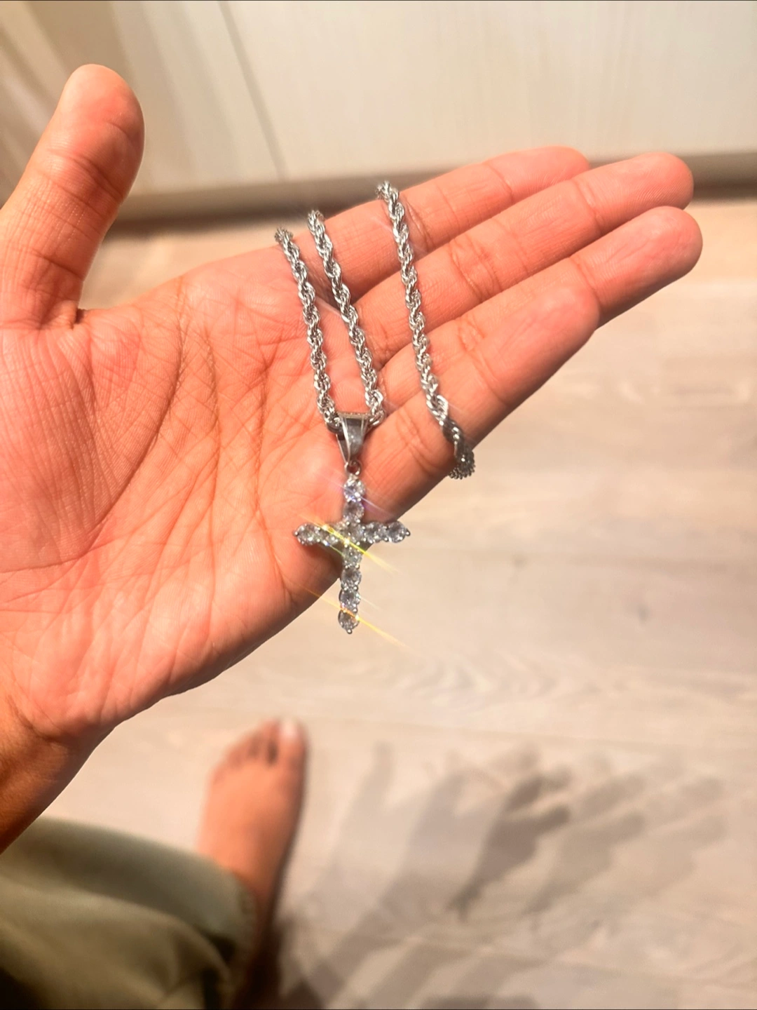 304 stainless steel , 22 inch , 4 mm , with Cross pendant Rhinestones.
