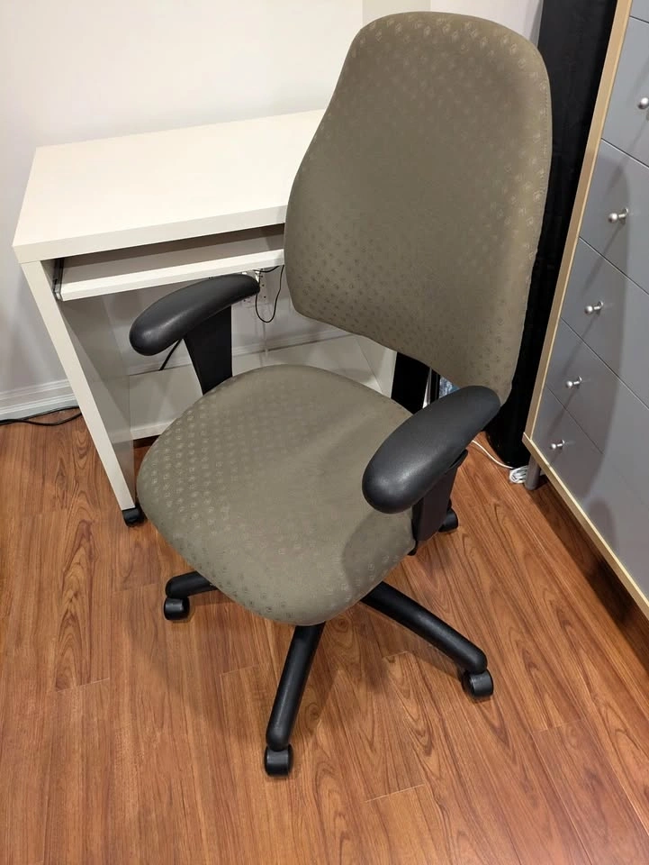 Moving sale. Fully adjustable desk chair in green. Used, but all moving parts are working great. If the ad is up, it is available. Pick up Mississauga West End.
