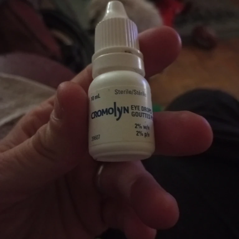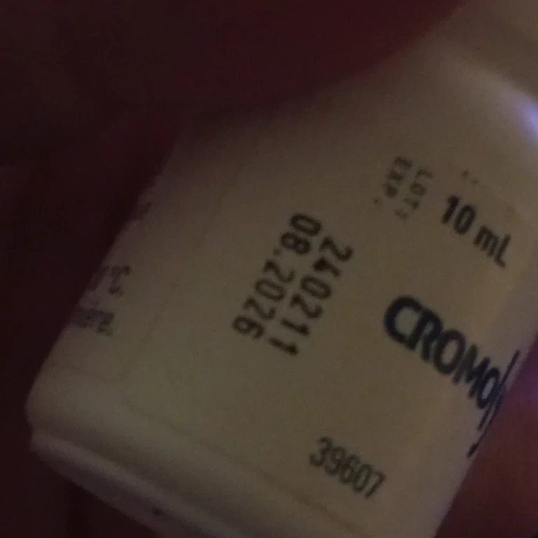 Cromolyn sterile eye drops in a 10ml bottle. Expiry date 2026 08. This is for eye irritation relief.
