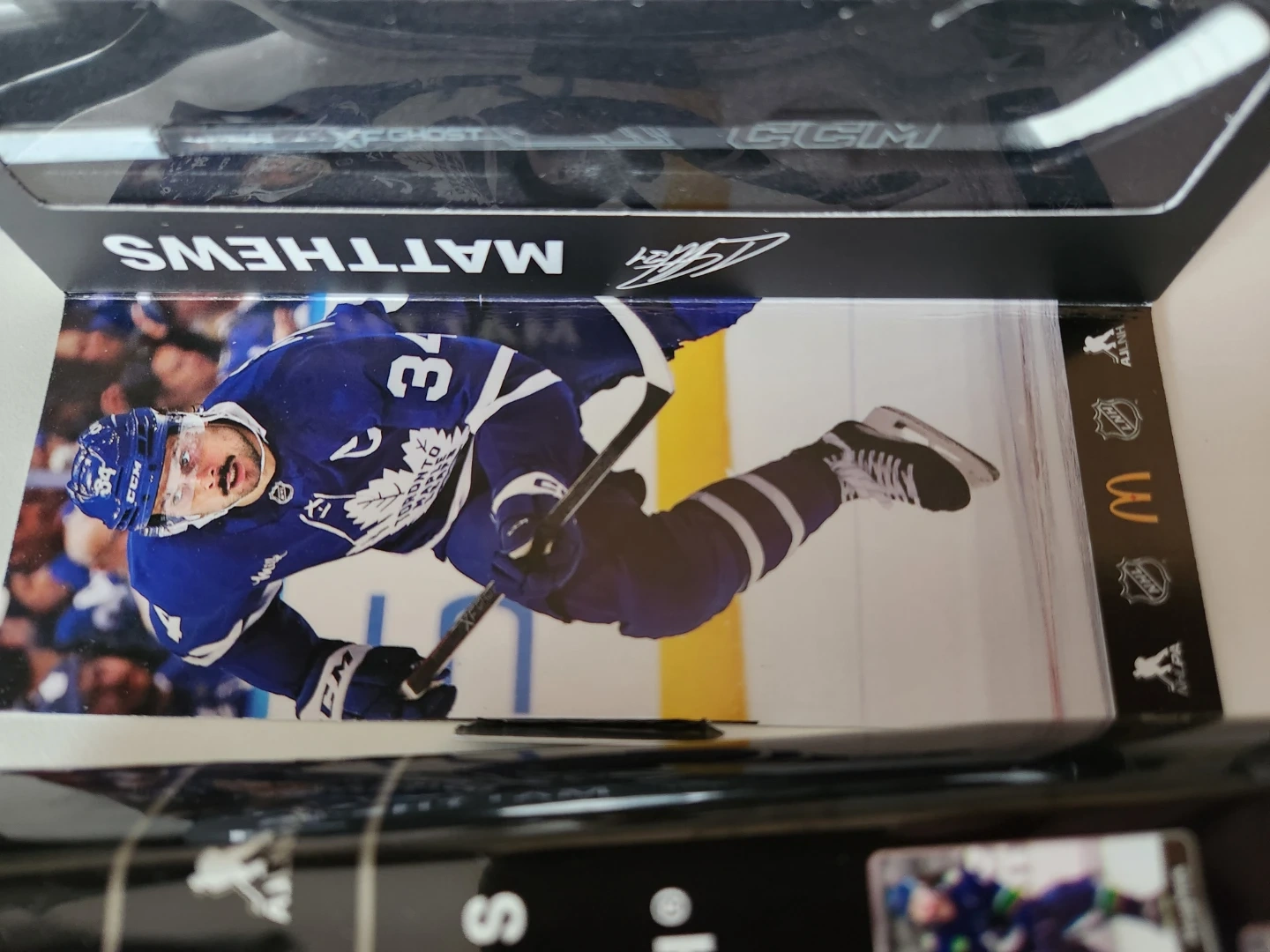 This is a McDonald's NHL Star Sticks collectible featuring Auston Matthews. It includes a card with Matthews on it and a mini hockey stick. Perfect for any hockey fan!