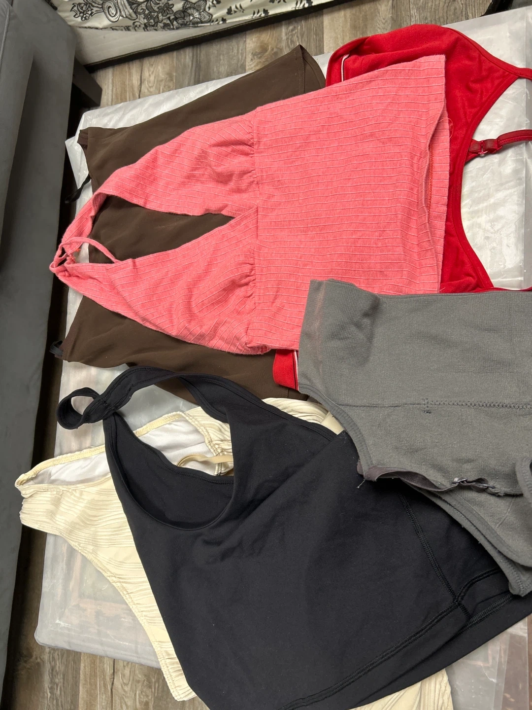 This bundle includes a variety of women's tops and tank tops in different colours and styles. One red tank top features the Tommy Hilfiger logo. They're great for casual wear or layering.No tear,no stain and no hole