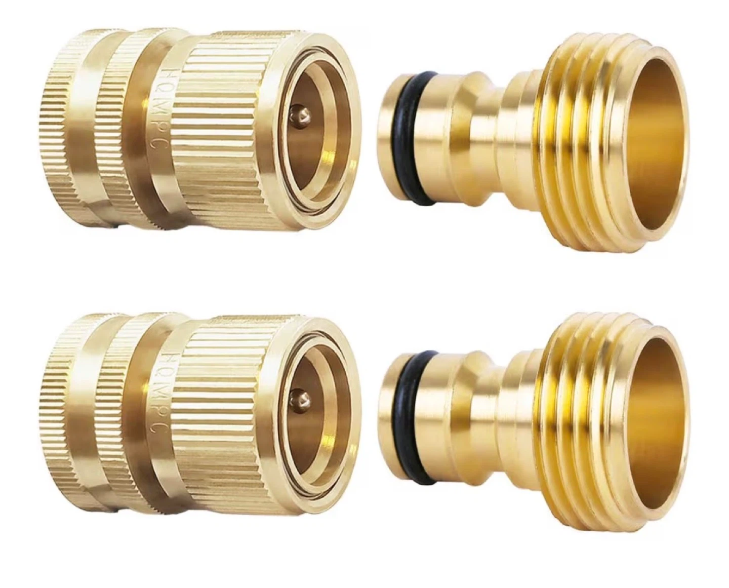 This set includes two brass quick connectors for garden hoses. Brass construction provides durability and rust resistance.