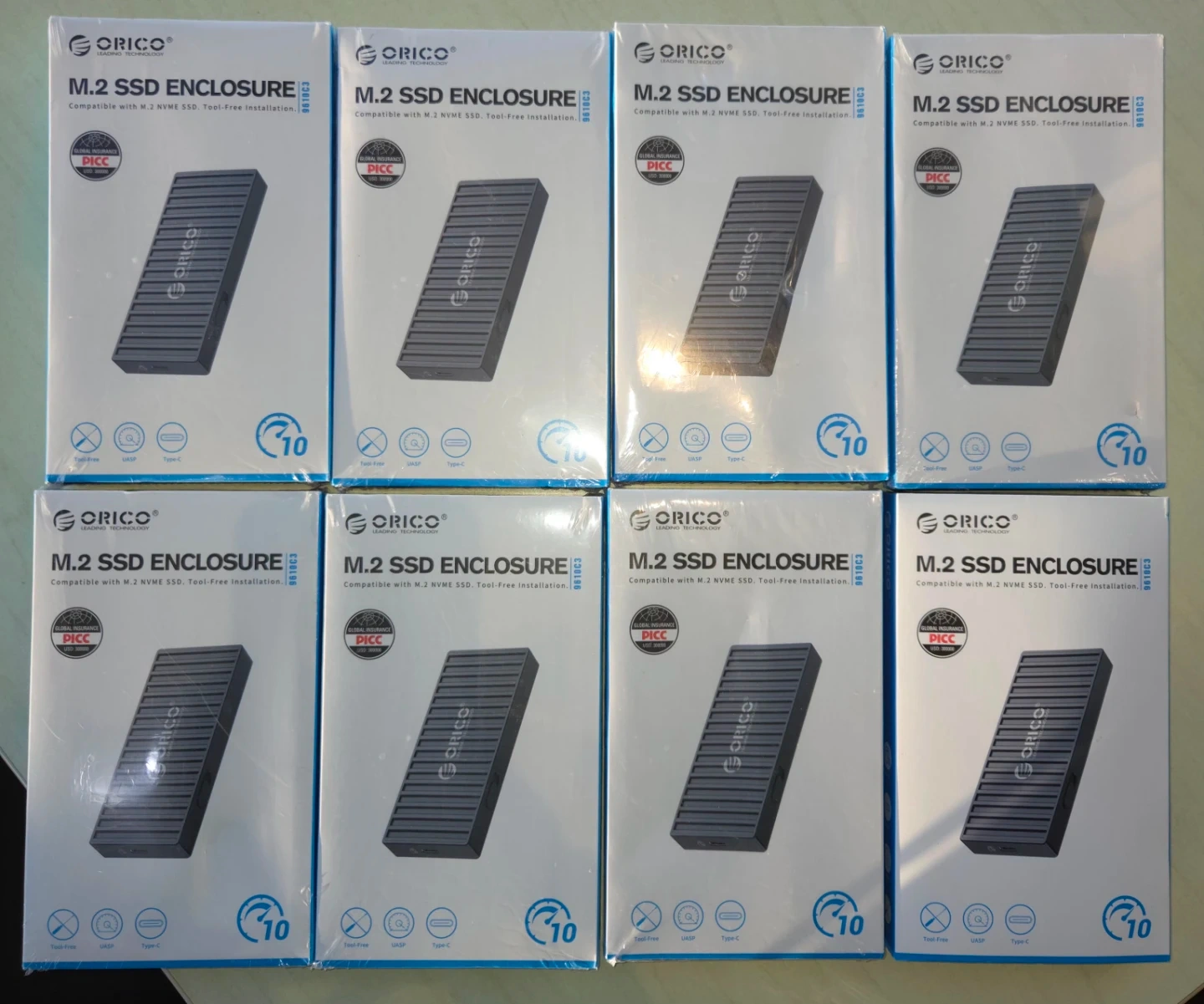 Brand new ORICO M.2 SSD enclosures. Supports NVMe SSDs. Supports all major SSD sizes (2230, 2242, 2260, 2280) and both M-Key and B&M-Key SSDs. It has a tool-free design.