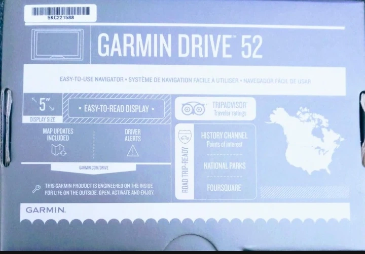 Selling a Garmin Drive 52 GPS navigator with a 5" easy-to-read display! It's perfect for road trips with map updates included. You'll also get driver alerts to help you stay safe on the road. It's road trip ready with points of interest from the History Channel, National Parks, and Foursquare. This comes in the original box! Never used!