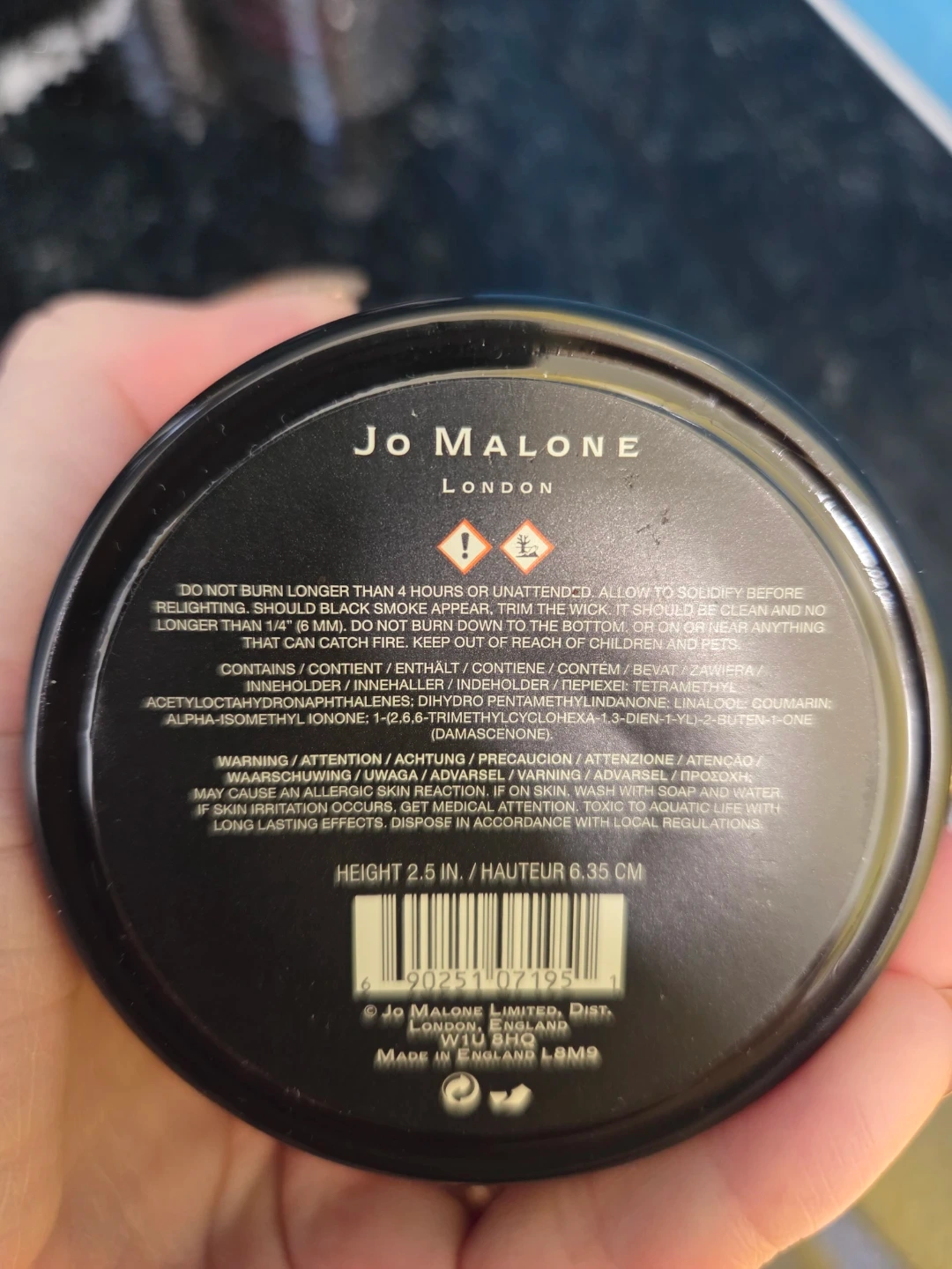 Selling a Jo Malone Myrrh & Tonka scented candle! The height is 2.5 inches or 6.35 cm. It smells amazing and would be perfect for creating a relaxing atmosphere in your home.