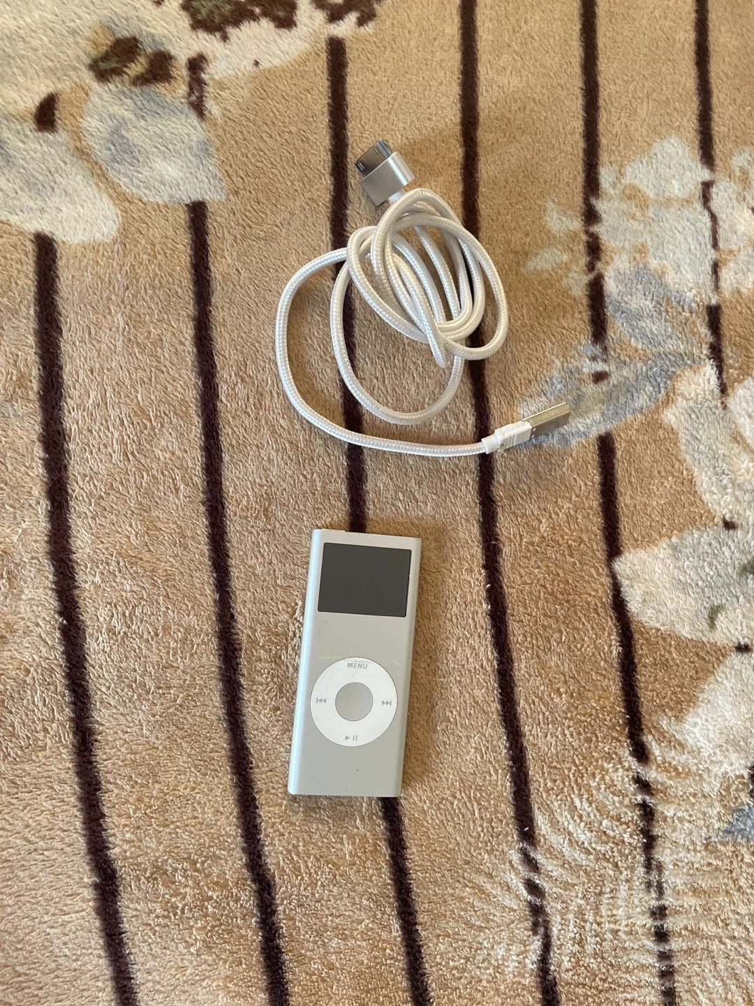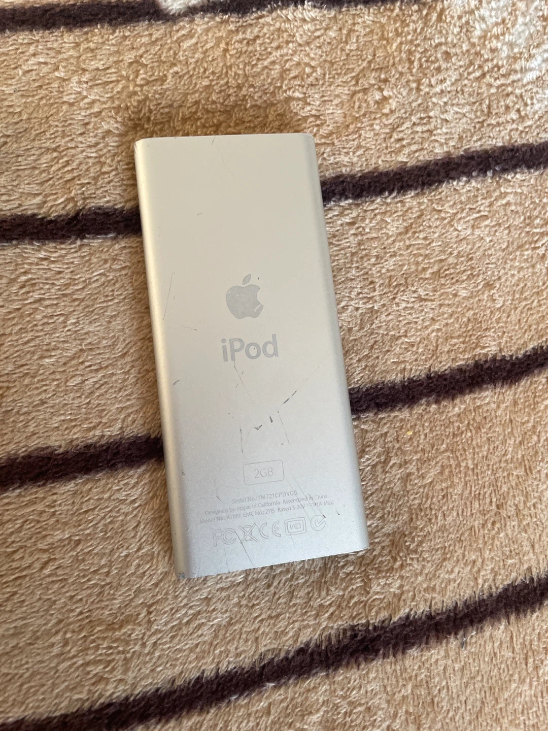 Selling a used Apple iPod with 2GB storage in silver. It comes with the charging cable. There are some scratches on the back,but nothing else wrong with it and is working