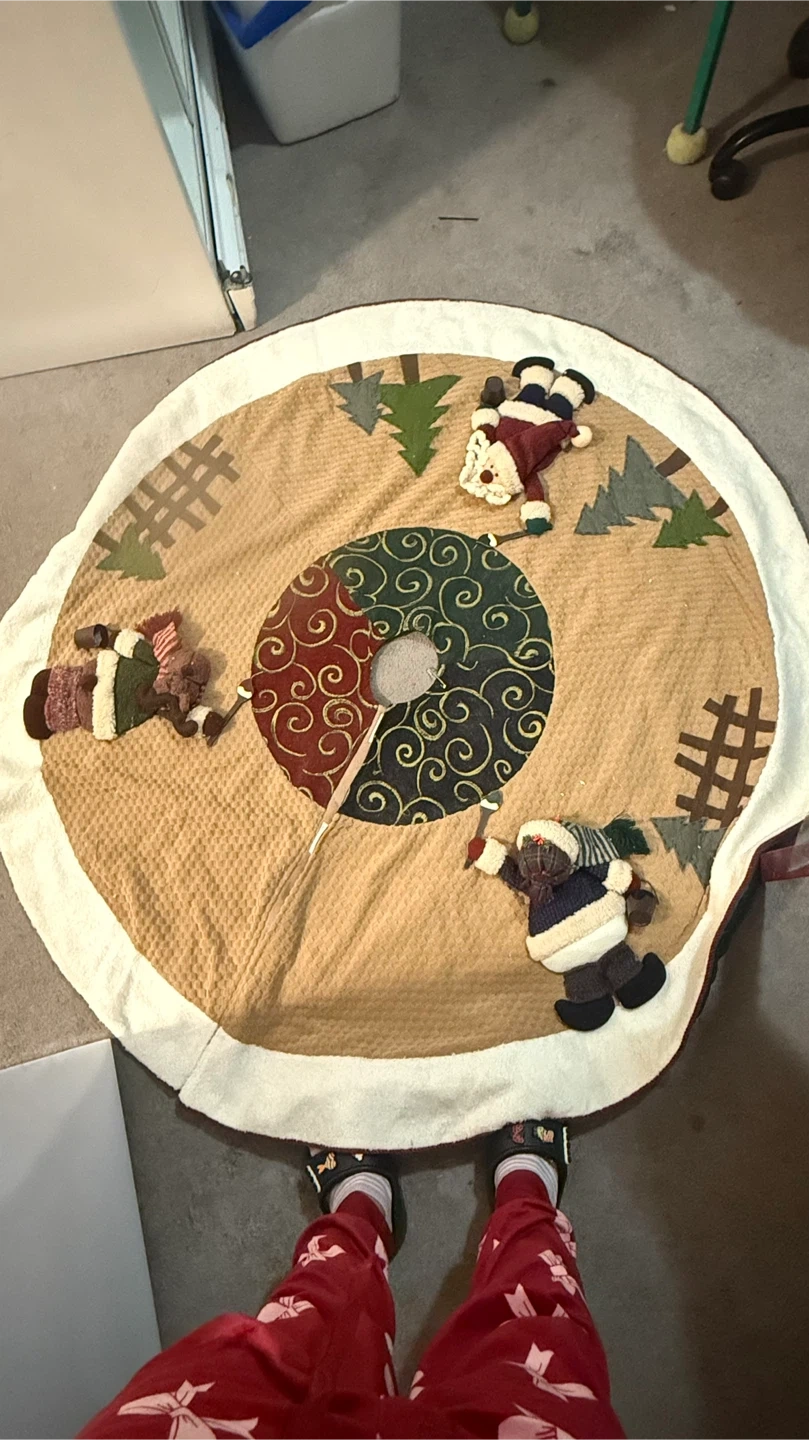 Selling a variety of Christmas decorations to brighten up your home this holiday season! Included are a Christmas tree skirt with Santa figures, a Santa wall hanging, gnome ornaments, a snowflake ornament, and a large red sequin ornament, along with several boxes of pink and silver ornaments