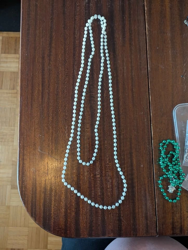 Selling a lot of five festive beaded necklaces, perfect for Mardi Gras, St. Patrick's Day, or any party!
