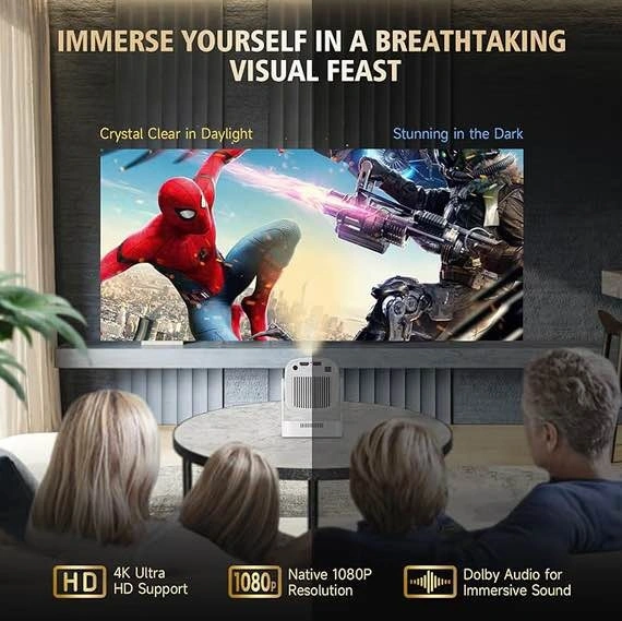 Mini Projector with WiFi and Bluetooth, 4K Full HD 200ANSI