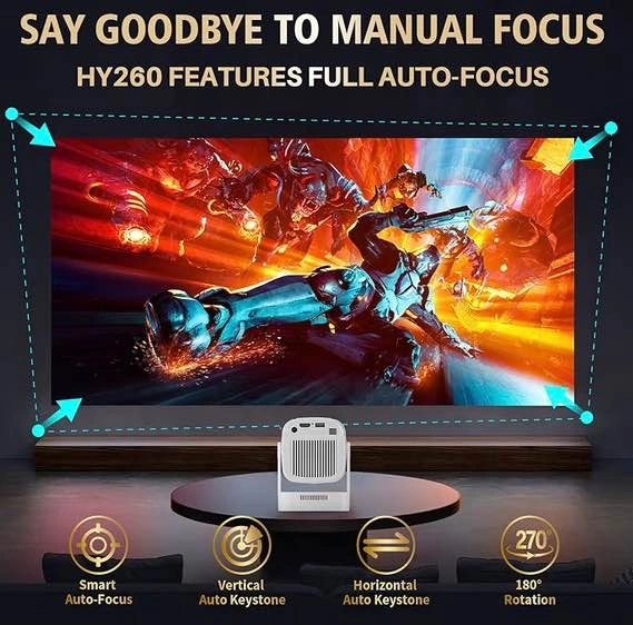 Mini Projector with WiFi and Bluetooth, 4K Full HD 200ANSI