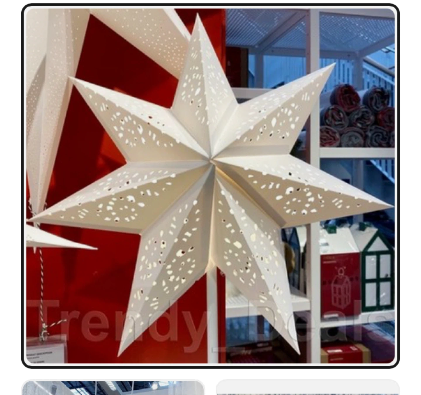 This white paper star lantern is designed by Jennifer Idrizi for IKEA's STRÅLA collection. It's 70 cm (28 inches) in diameter and includes the necessary assembly parts and instructions. A great decorative piece for holiday or everyday ambiance!