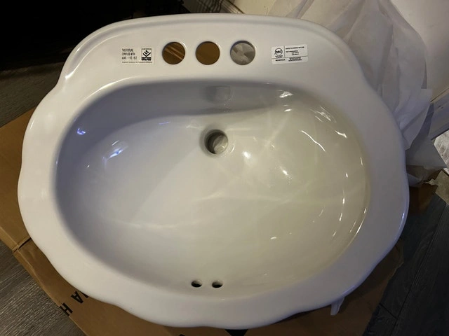 Brand new in box! This is a beautiful Ceralux "Sunflower" oval drop-in lavatory sink in classic white. It features a unique decorative scalloped/ridged edge that adds a high-end, vintage look to any vanity. Model: 8444W. Type: Drop-in (top-mount) for vanity countertops. Faucet Drilling: 4" centers (standard centerset/minispread). Condition: Perfect, never installed, still in original box. Dimensions: Standard oval size (approx. 20" x 17"). Perfect for a bathroom refresh or a new vanity project! Pickup in Beaverton. Have several if you need more than one.
