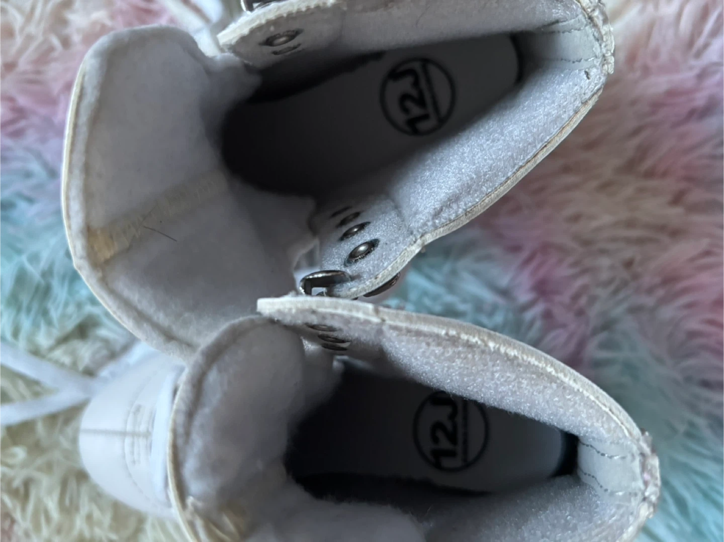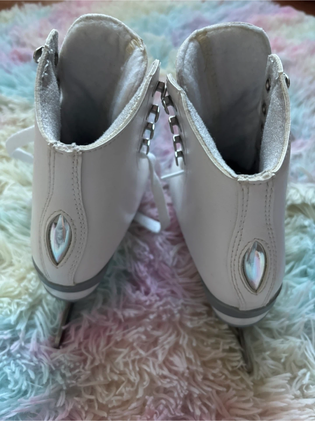 • Usage: Worn only once. The santa gave this to my child and she tried them on at the rink shortly, and they have been kept in a bag ever since.