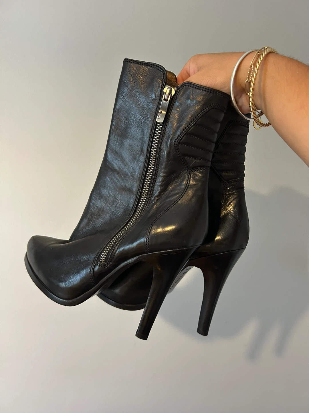 This is a pair of black leather ankle boots by Barbara Bui. They are a European size 36.5. These stylish heeled boots feature a zipper and are in good condition! Perfect for fall!!