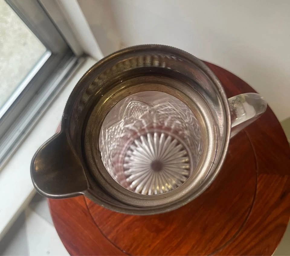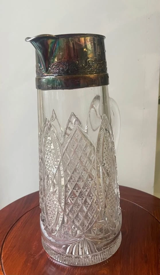 Vintage Cut Glass Pitcher silver plated Metal Top