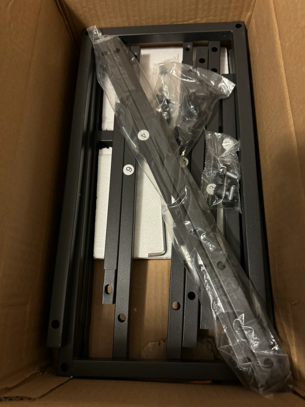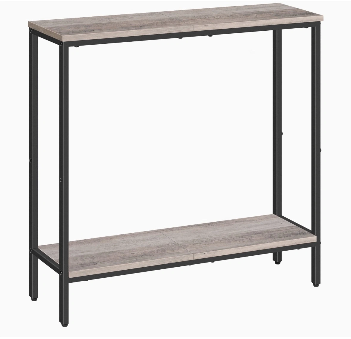 Console table with two shelves and a grey top and black frame. Quick to Assemble each part is clearly labeled and has a comprehensible instruction. This two tier console table takes up a little space and adds an aesthetic style at your home.